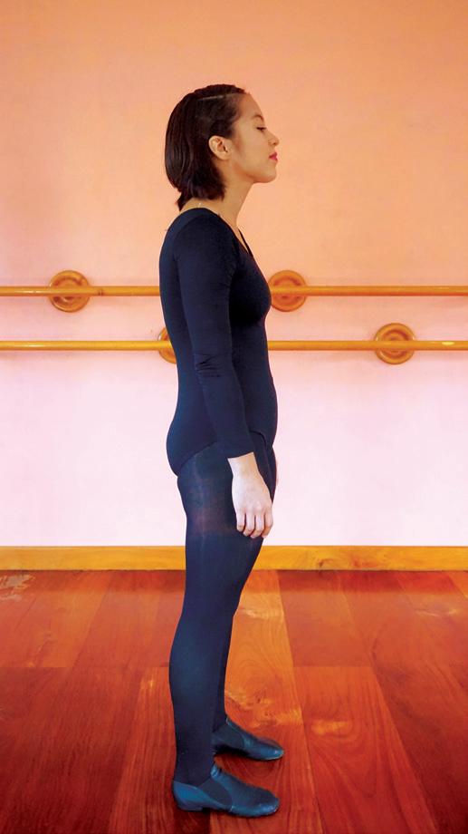 Postura corporal. Posición del bailarín donde ubica las partes del cuerpo manteniendo el eje vertical y realizando contracción del abdomen y los glúteos.