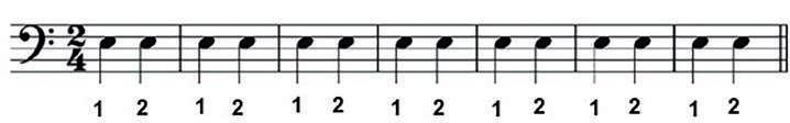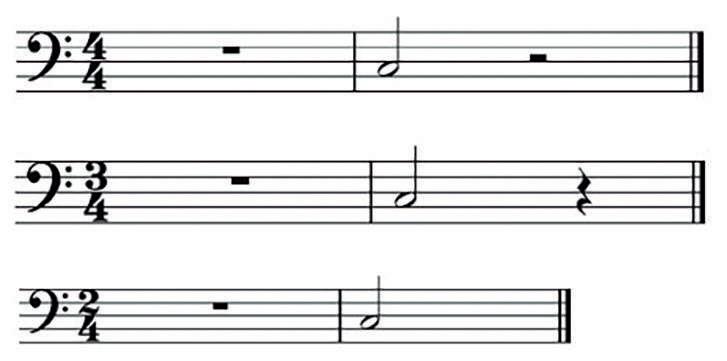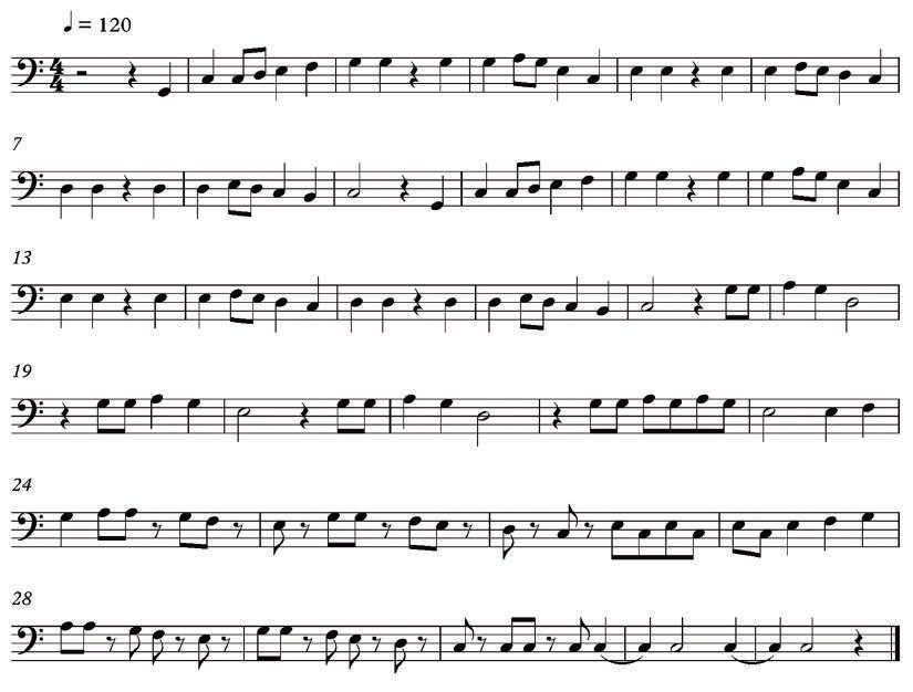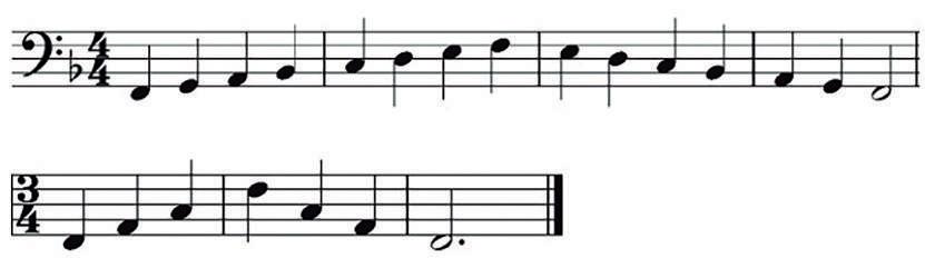 UNIDAD 1 --------------------------------------------------------------------------102 - La clave de Fa - Notación - Figuras - Barras de compás y compases. - Compás.