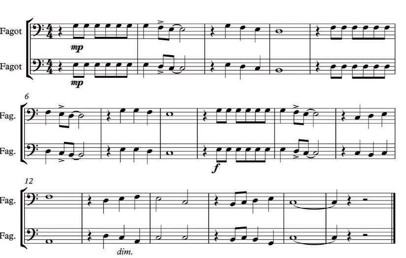 UNIDAD 2 -------------------------------------------------------------------------112 - El calderón - EJERCICIOS UNIDAD 2 - Ejercicio 6 - Ejercicio 7 - Ejercicio 8: - Lección 4 - Desarrollo del sonido - Dueto para dos fagots.