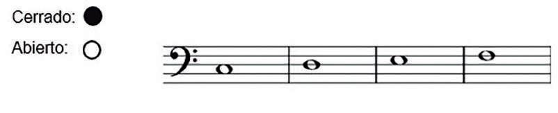 Acto seguido, coloque sobre el caballete la mano derecha muy relajada y en forma natural, sin estirar, ni encoger los dedos y sostenga el pulgar relajado, por encima de la llave del Mi grave.