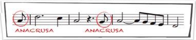 En música, el término anacrusa hace referencia a la nota o grupo de notas sin acento que preceden al primer tiempo fuerte de una frase y que, por lo tanto, puede aparecen antes de la barra de compás.