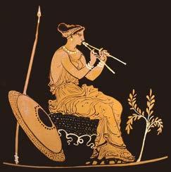 El ditirambo, creado en el culto a Dionisio, consistía en unos bailes y cantos acompañados por el aulos.
