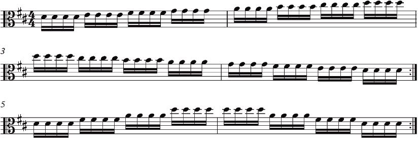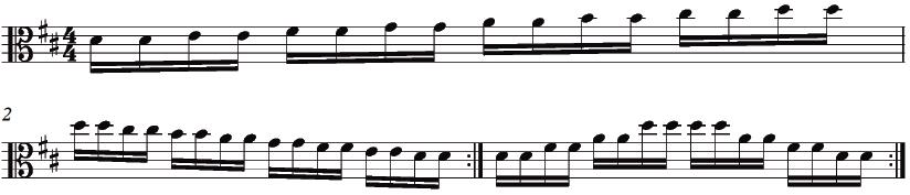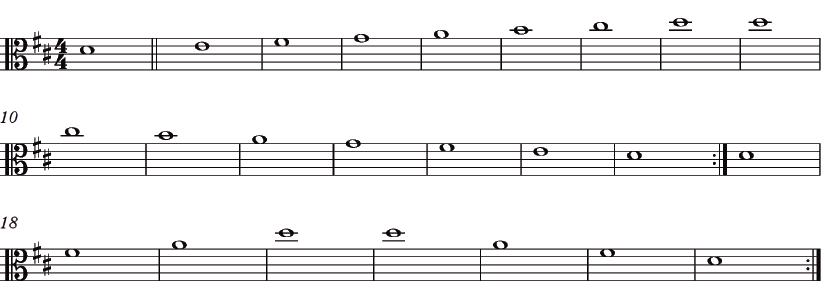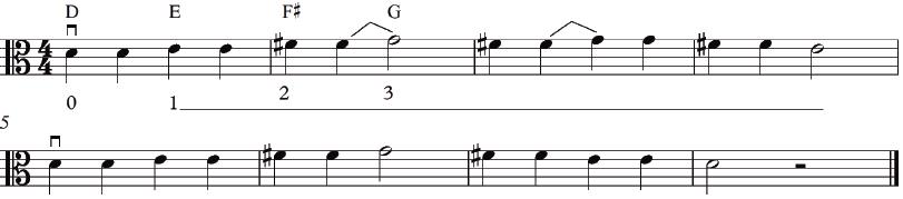 Re – Mi – Fa# - Sol – La – Sol - Fa# - Mi – Re