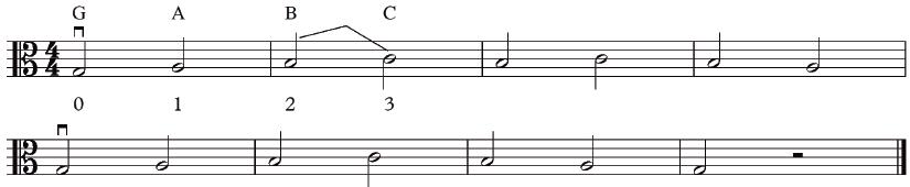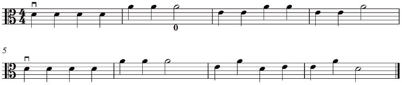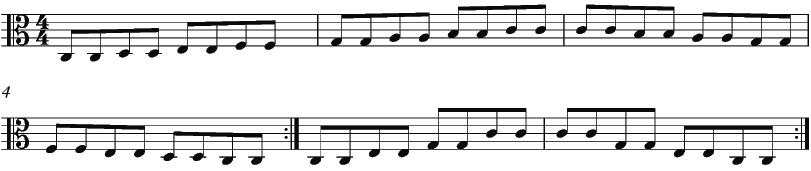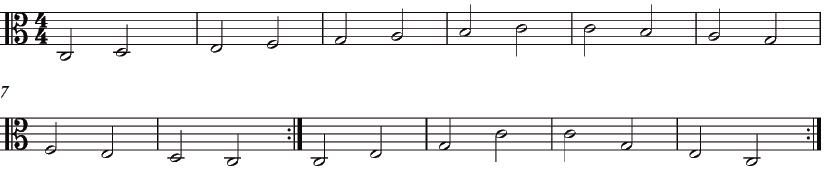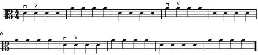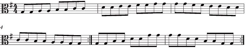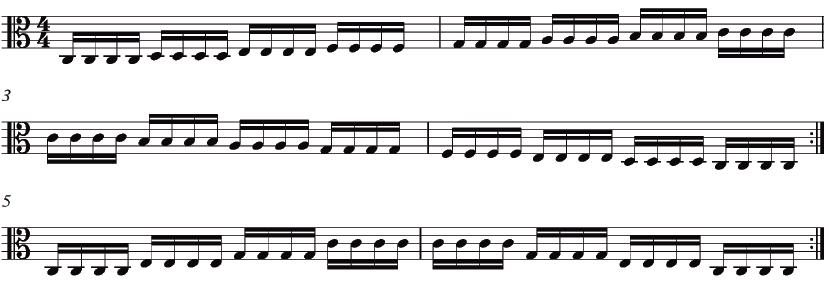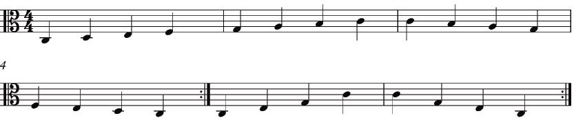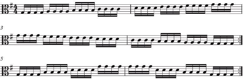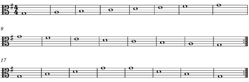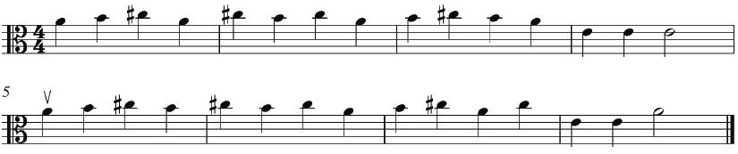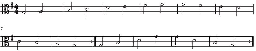 Sol – La – Si – Do – Re – Do – Si – La – Sol Sol# - La# - Do – Do# - Re# - Do# - Do – La# - Sol#