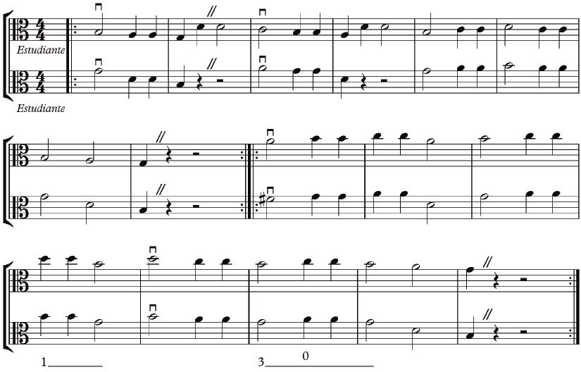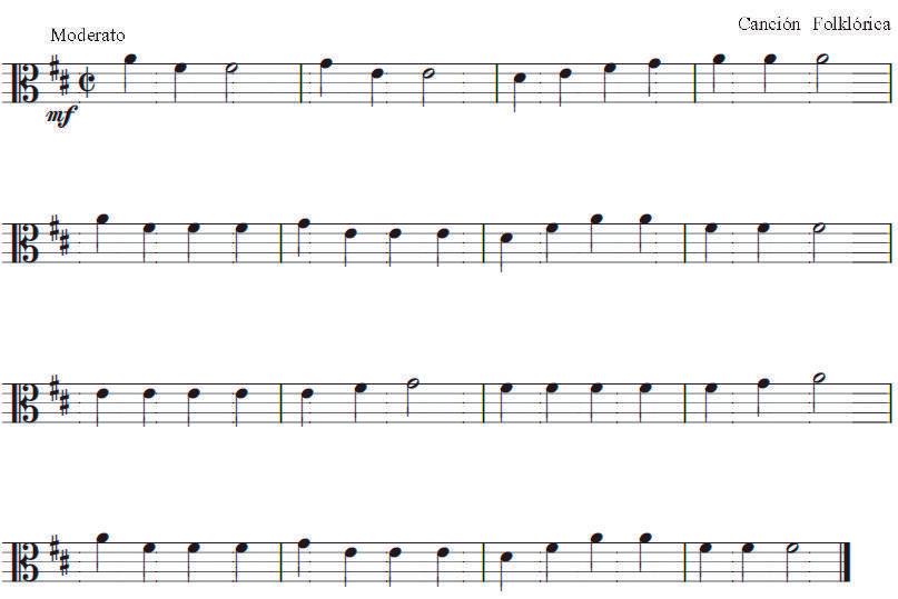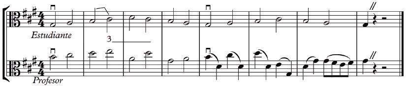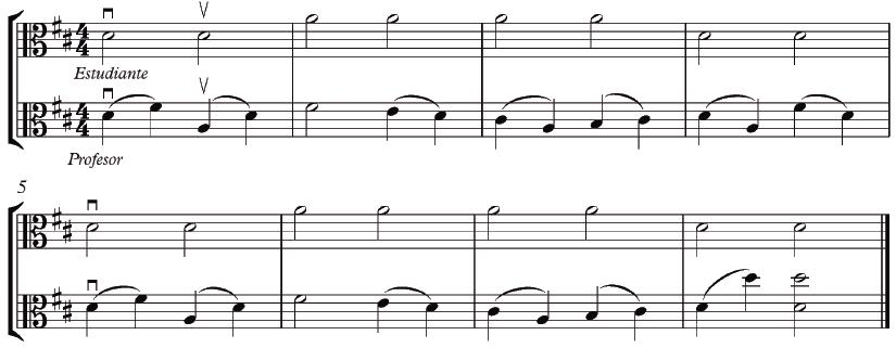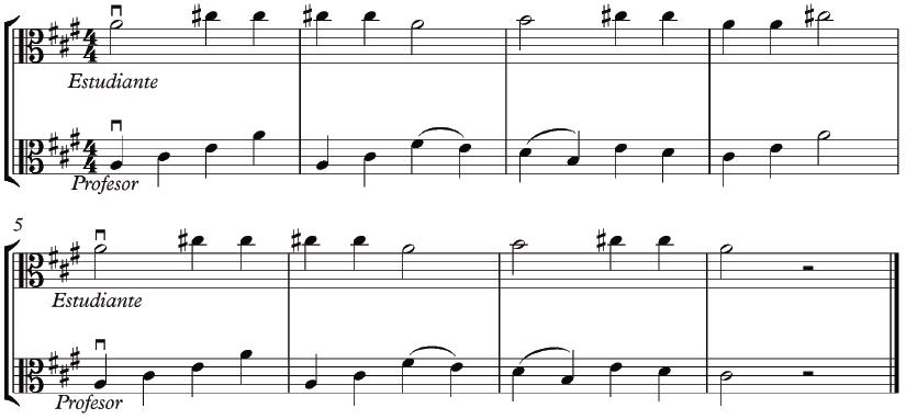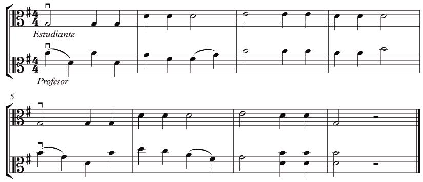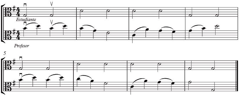 Ejercicio 3: Con voz cantada, los estudiantes deben cantar la pieza nombrando cada nota musical por su nombre.