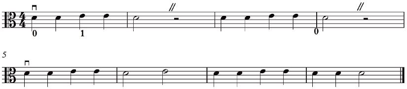 Finalmente, si luego de atrasar o acelerar el tempo deseamos volver a la velocidad de ejecución original, se puede utilizar una expresión como a tempo o tempo primo (primer tiempo, o tiempo original). Veamos un ejemplo: