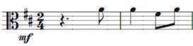 Combinaciones rítmicas y melódicas con puntillo en compases simples con sus correspondientes silencios.