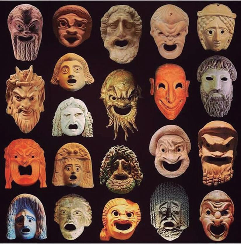En los inicios del teatro, los actores eran exclusivamente hombres; quienes vestían con la ropa de uso cotidiano, portaban máscaras que permitían visibilizar al actor y ayudaban al espectador a reconocer las características del personaje.
