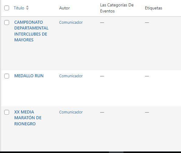 Cada evento debe contener una imagen (que debe optimizarse antes de subirse a la pagina) fecha, hora, valor de la inscripción, programación y planilla (para los eventos de la liga), ubicación y datos de contacto, pueden ser los datos de la Liga o del organizador MCM EVENTOS que maneja varias de las carreras que patrocina la Liga.