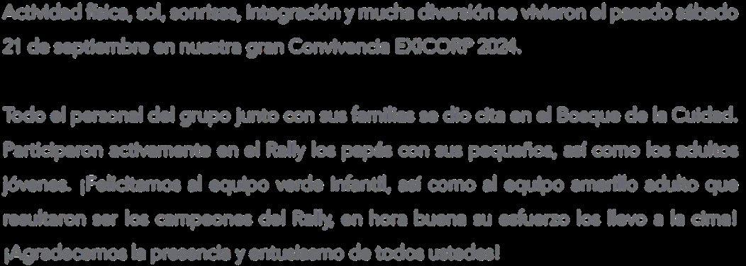 Actividad física, sol, sonrisas, integración y mucha diversión se vivieron el pasado sábado 21 de septiembre en nuestra gran Convivencia EXICORP 2024.