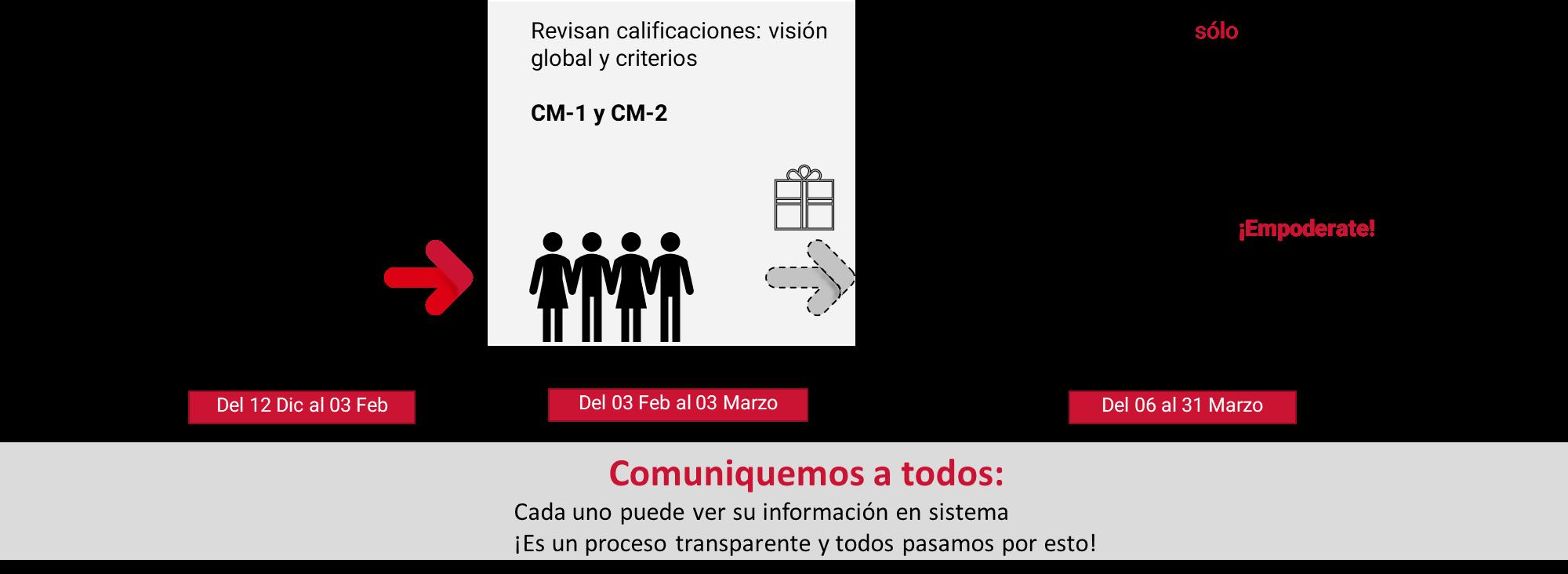 Respuesta 10: Posterior a el proceso de evaluación preliminar del jefe directo, viene la etapa de calibración que es donde el CM-1, CM-2 y en los casos que apliquen (áreas que son masivas) el CM-3, juntos en una reunión, revisaran las calificaciones asignadas en toda el área. En esta sesión ellos aseguran objetividad y criterios homogéneos. Para asegurar el éxito de este proceso de calibración es importante que vos como líder asegurés revisar las calificaciones finales ya calibradas y converse con tu líder para entender los ajustes que hicieron y su criterio. Posterior a esta etapa el líder conversara solo con los colaboradores que en la etapa de calibración sufrieron cambios en su calificación, con el fin de brindarles retroalimentación y asignar las acciones de desarrollo en caso de requerirse en su Plan de desarrollo individual (PDI).