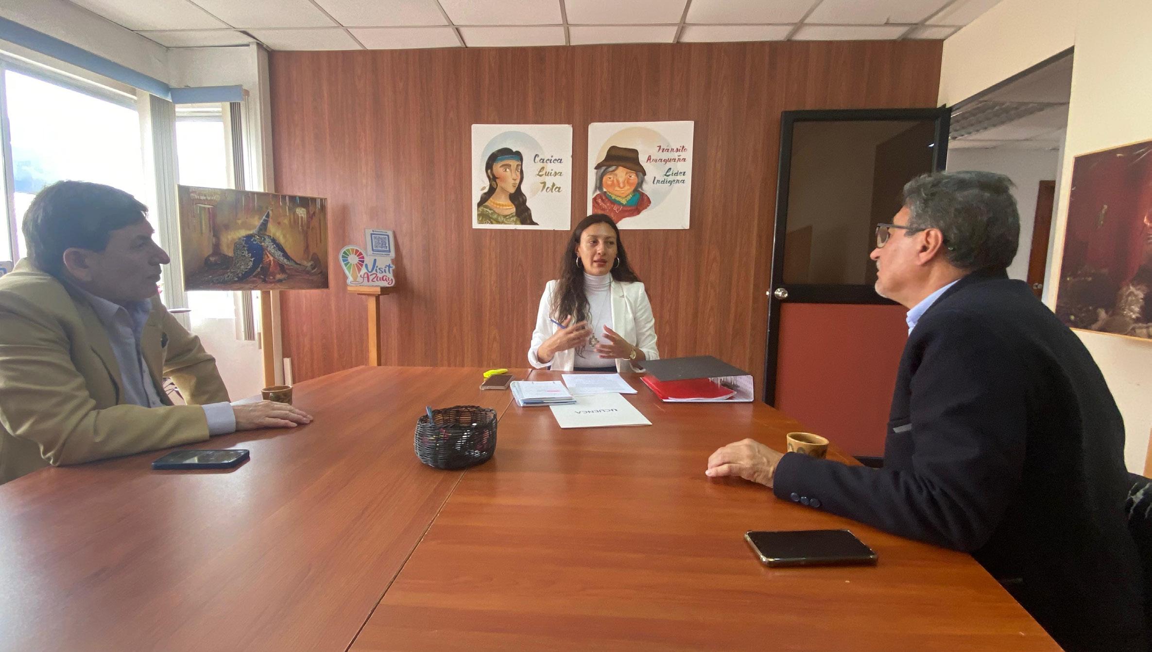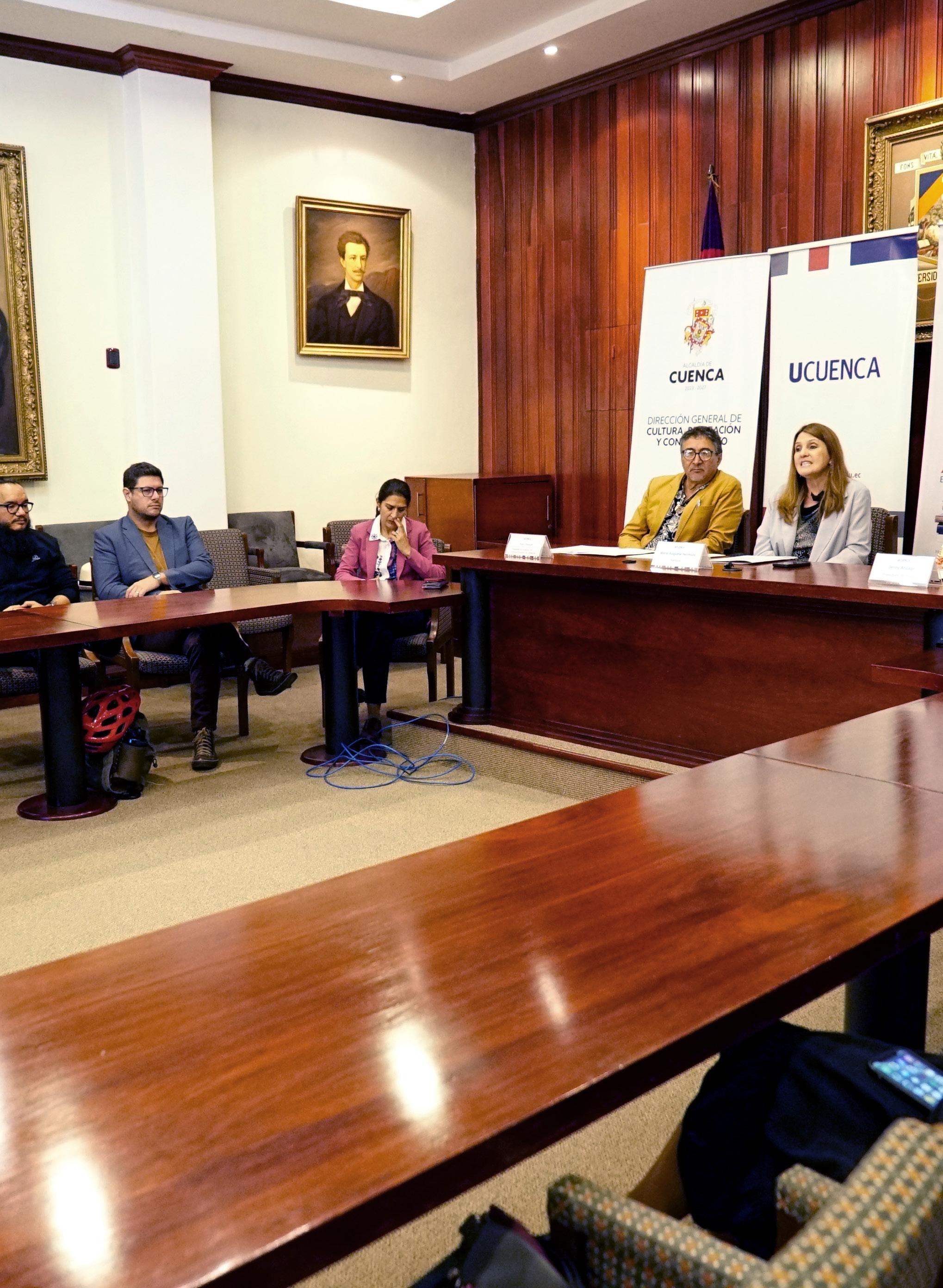 3 El presidente del Encuentro, Iván Petroff, junto al decano de la Facultad de Filosofía, Fernando Ortiz, durante la reunión con el director de Cultura del Municipio de Cuenca, Jonathan Koupermann.