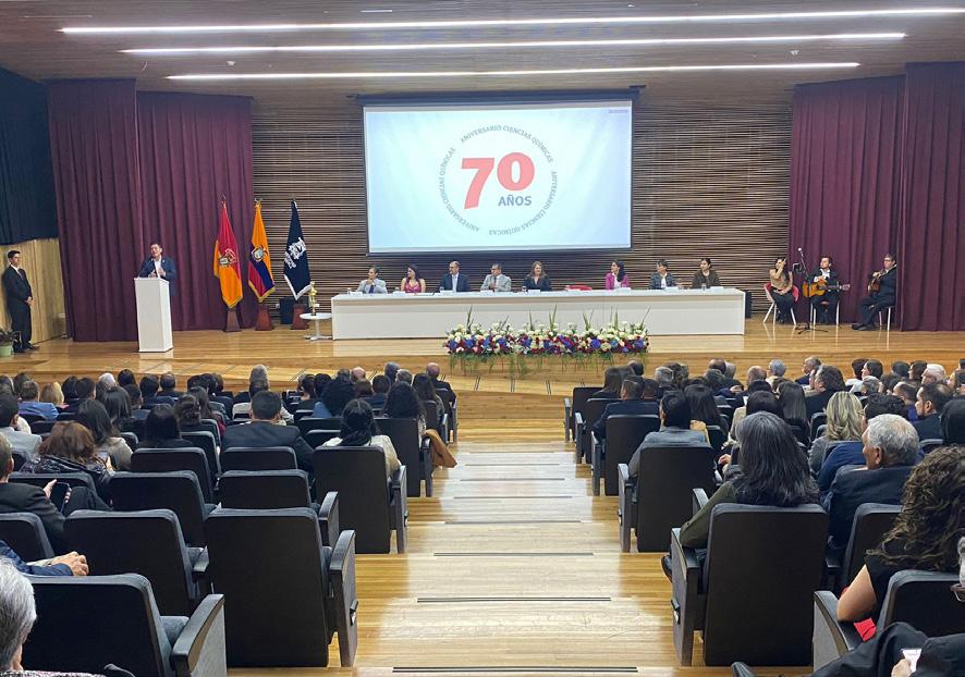 Fausto Zaruma, decano de la Facultad de Ciencias Químicas menciona: "Hoy celebramos con orgullo los 70 años de historia de nuestra facultad. Estos años no solo han sido una etapa de logros y avances, sino también de desafíos que nos han permitido crecer y adaptarnos a los cambios que nos exige la sociedad. Este aniversario es