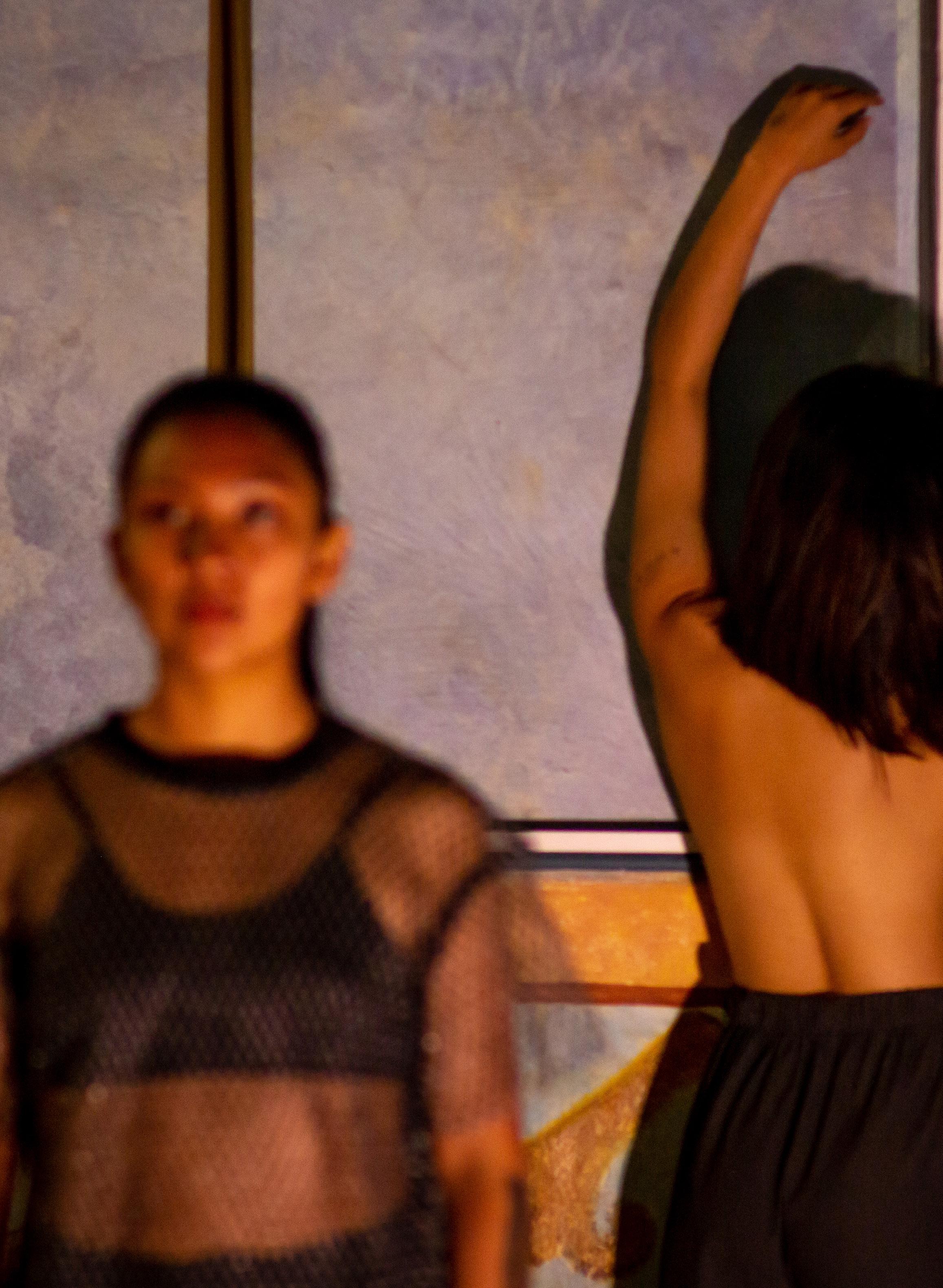 "Habitar poéticamente el espacio significa transformarlo y transformarse a la vez, llenándolo y vaciándolo de significados. Es una propuesta en la que la cámara se convierte en la artista, mientras el cuerpo actúa como pincel y dibujo simultáneamente. Aquí, la cámara guía al ojo creativo del espectador, quien construye su propia obra eligiendo formas, colores, texturas, movimientos y gestos. Esta pieza interdisciplinaria está conectada por la experiencia de expandir la percepción de los sentidos, contagiando al público con el deseo de sentir más allá de lo evidente."