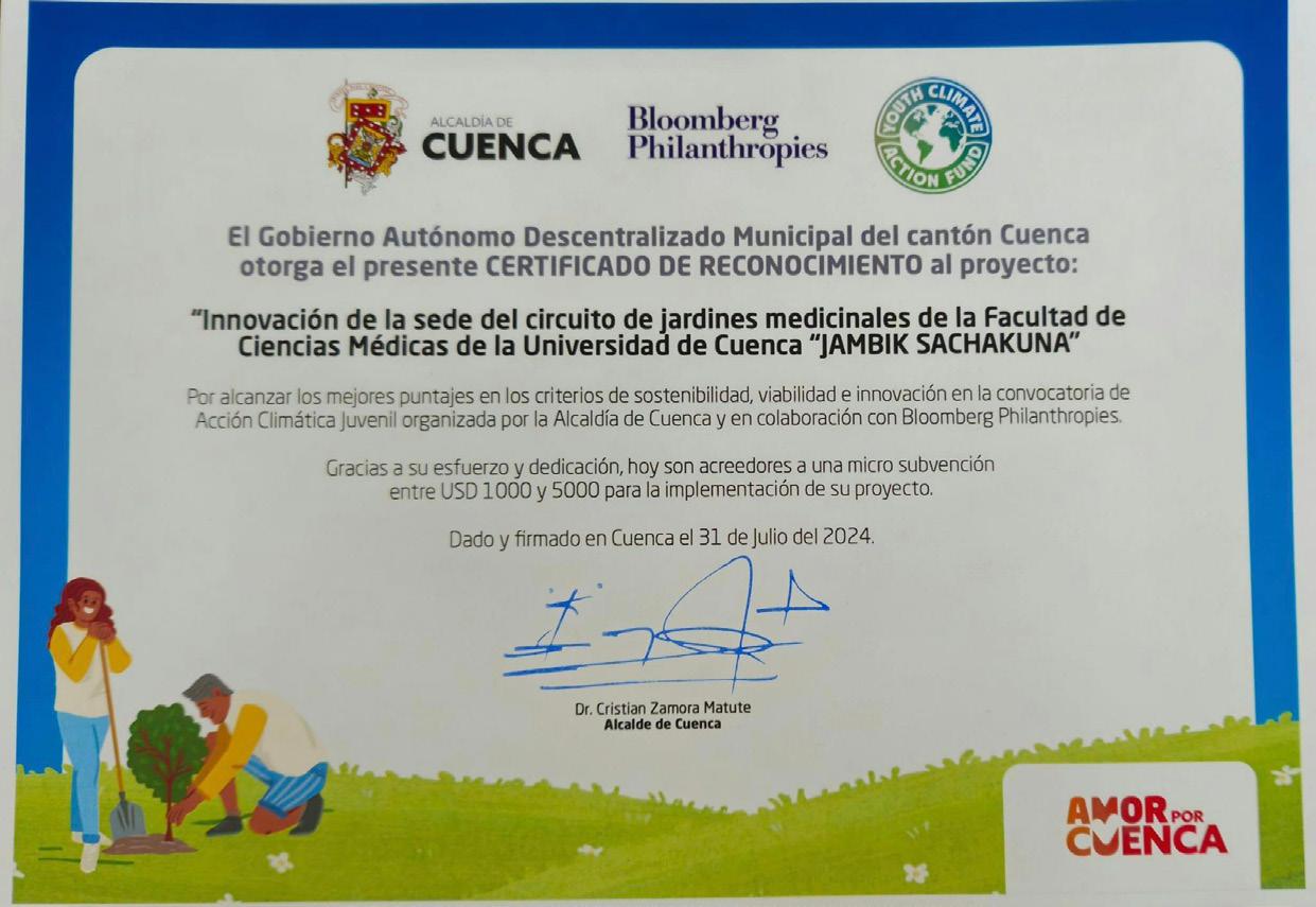 Siguiendo la línea ambiental, tenemos también buenas noticias: dos proyectos del Circuito de Jardines Medicinales de la organización JE-Latinoamérica, conformada por estudiantes de la Universidad de Cuenca, ganaron en el concurso Acción Climática Juvenil convocado por Municipio de Cuenca y el Proyecto Bloomberg que busca aportar a la mitigación de los efectos negativos del daño al medioambiente. Un ejercicio de vinculación social exitoso.