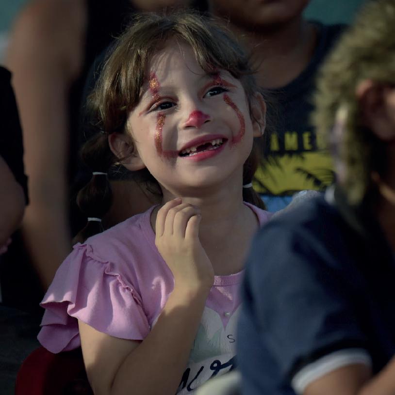 Buscando zar nuestros lazos de f raternidad con los más pequeños y el trabajo social de las comunidades en zona de ncia; desarrollamos la actividad cine al parque, un evento que generó la experiencia de apor tar felicidad a niños y adultos, al proyectar una película en pantalla gigante que transmitió un bello mensaje de amistad, cooperación y valores sociales.