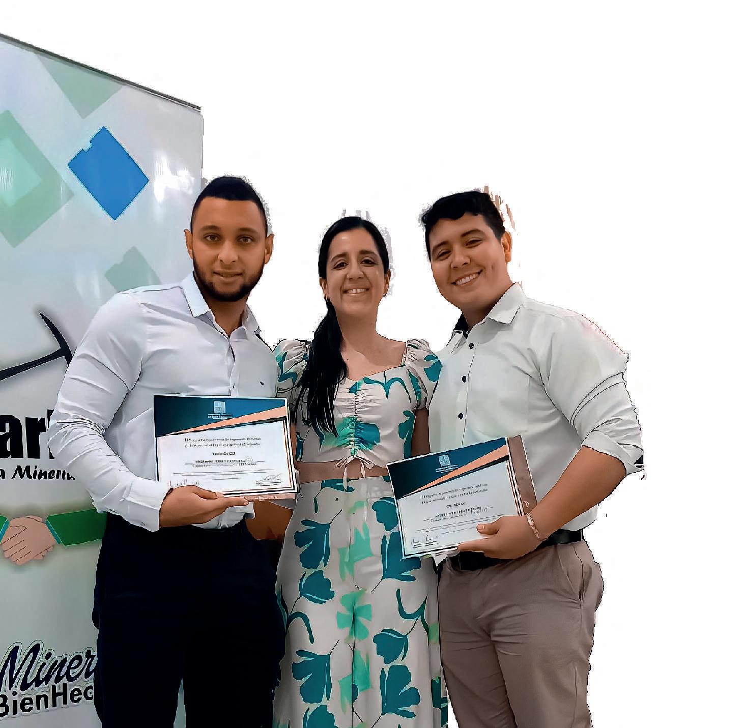 La capacitación del recurso humano es fundamental para la empresa, por eso hoy resaltamos el logro académico de Ramón Alejandro Sánchez Guanipa y Wuilmer Esleiter Lázaro Hernández, integrantes del equipo de Mantenimiento de Minería Nor te de Santander, quienes por medio de la presentación de evidencias de desempeño, producto y conocimiento, se cer caron en la competencia Soldar láminas metálicas según técnica de arco manual electrodo revestido y normativa, en los niveles Avanzado e Intermedio respectivamente.