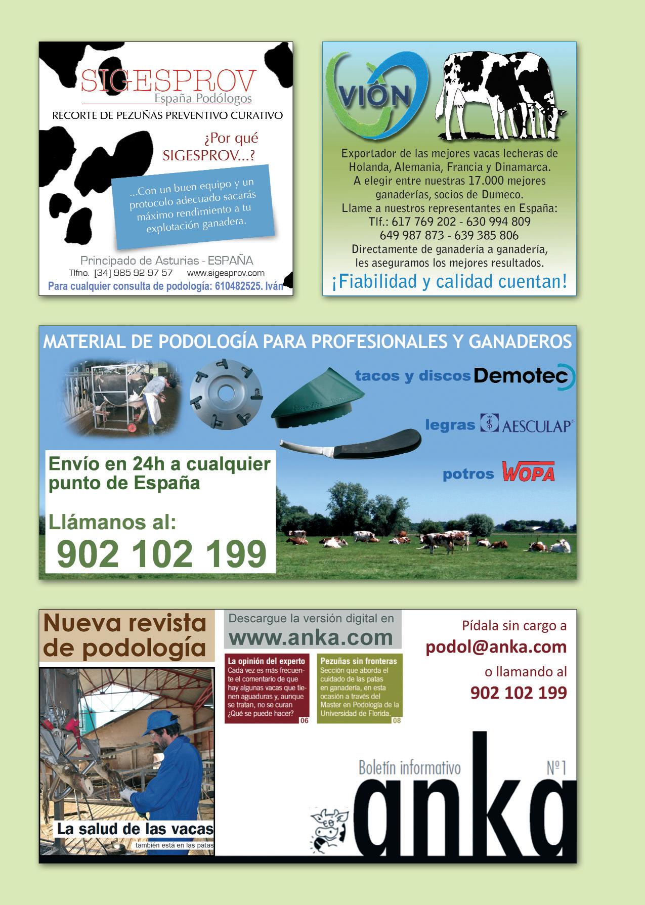 Legislación Nº 186 FRISONA ESPAÑOLA 121 Aberekin, S.A.....................Interior Contraportada Albaitaritza............................................................21 Anembe.................................................................93 Ascol...............................................Interior Portada C.R.I. España...........................................................77 C.R.V. Genetics España..........................................83 Euro Fomento Pecuario......................................17 Emporvet..............................................................89 Ganadería Badiola.................................................99 Gandagro...............................................................49 Gea Farm Technologies.....................................109 Global Genetics, S.L...............................................53 Lely, S.L..............................................60, 61, 62 y 63 Norel, S.A.............................................................119 Nutricor...............................................................101 Progenex, S.L.........................................................19 SETNA Nutrición..................................................117 Sersia España.........................................................73 SP Veterinaria......................................................115 Virbac España, S.A...............................................111 World Wide Sires España................Contraportada Xenética Fontao...........................................15 y 23 Índice de Anunciantes