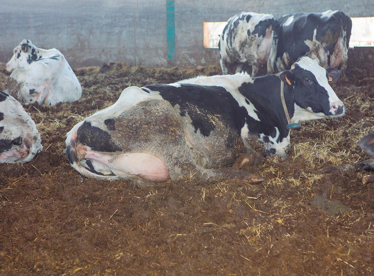 Una vaca descansa en la Granja García Iglesias, S C (León)