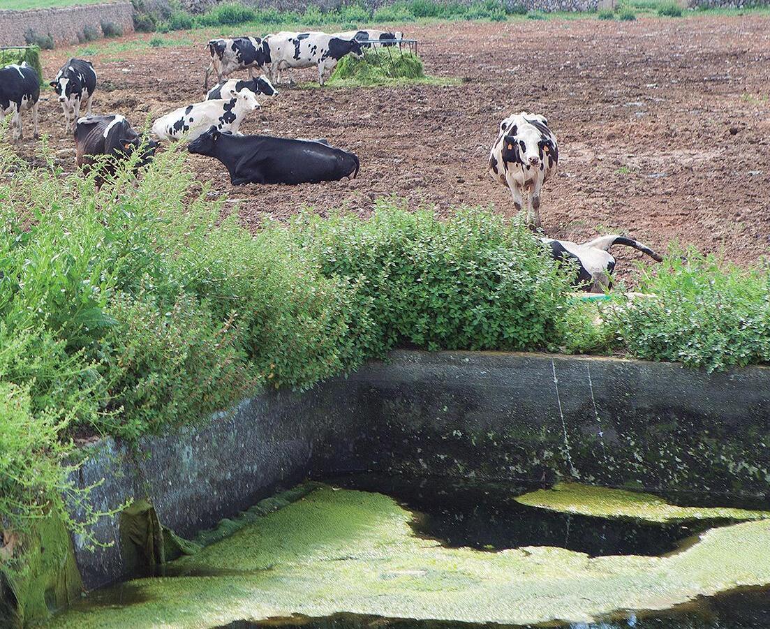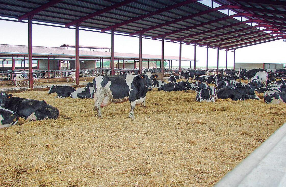 55 vacas lecheras disponen de un área de reposo sobre cama de paja acumulada con un pasillo de ejercicio cubierto donde se obtiene purín