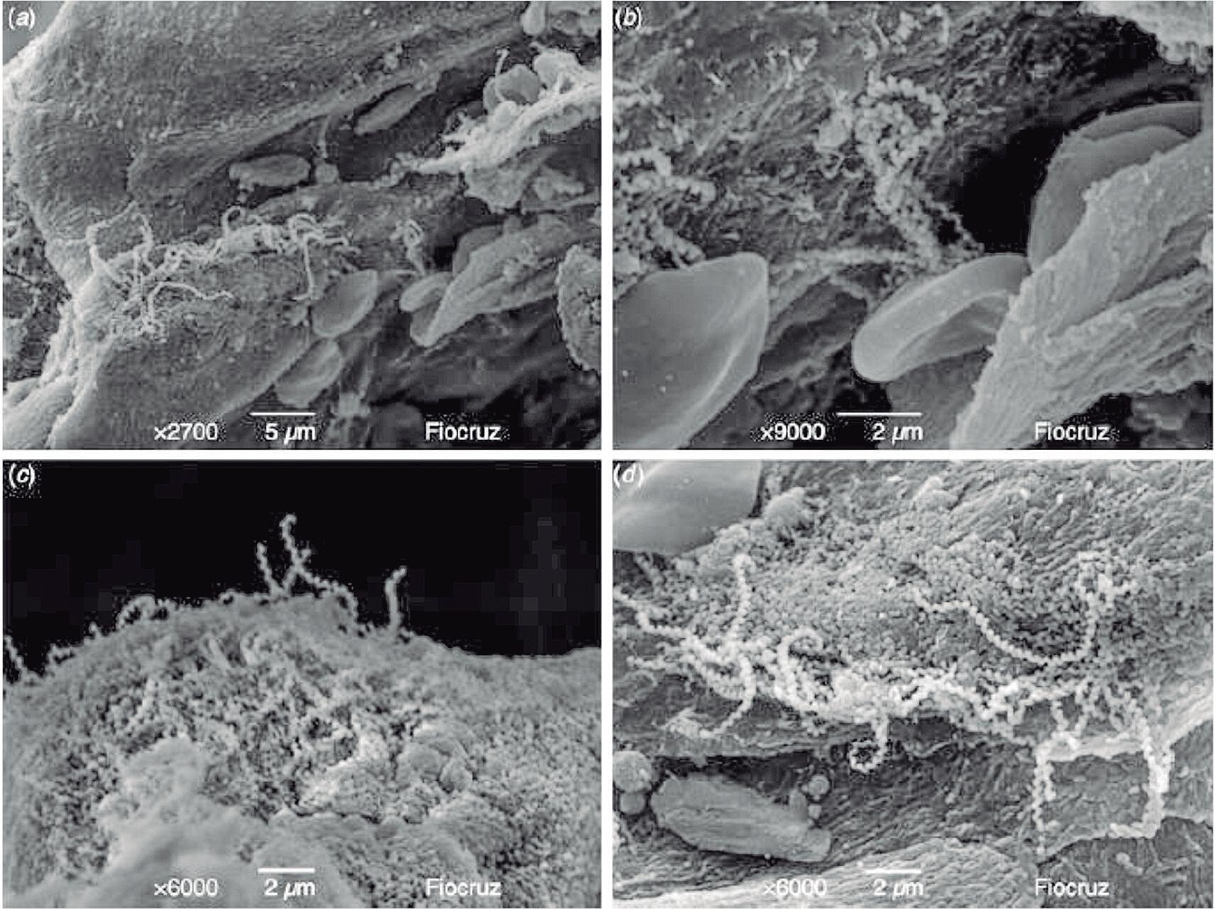 Imagen 3 Esta imagen muestra colonización por leptospiras de vasos sanguíneos de tejido mamario de rata “Ratus norvegicus” La rata transmite leptospiras a sus crías a través de la leche y perpetúan así el contagio a los animales domésticos La rata es vector portador de todas las serovariedades no adaptadas de Leptospiras Contagian principalmente a través de su orina Se da la coincidencia de que la rata y los ratones carecen de vejiga urinaria y dejan gotículas de orina continuamente por allá donde pasan; principalmente peligroso es su paso por los alimentos y agua de bebederos de los animales domésticos (Fuente: Epidemiol infect Cambridge University press 2016 “Leptospira in breast tissue of urban Norway rats (Rattus norvegicus) D De Oliveira et al Centro de pesquisas Gonçalo Moniz, Fundaçao Oswaldo Cruz Ministerio da Saúde Salvador Brazil)
