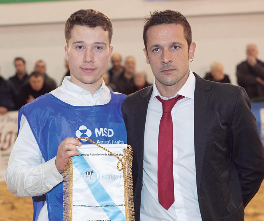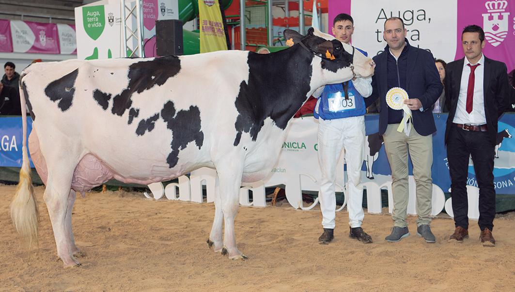Alberto Iglesia, de SAT Rey de Miñotelo, junto a la Gran Campeona de Galicia, Rey 814 Bemeer Yuri