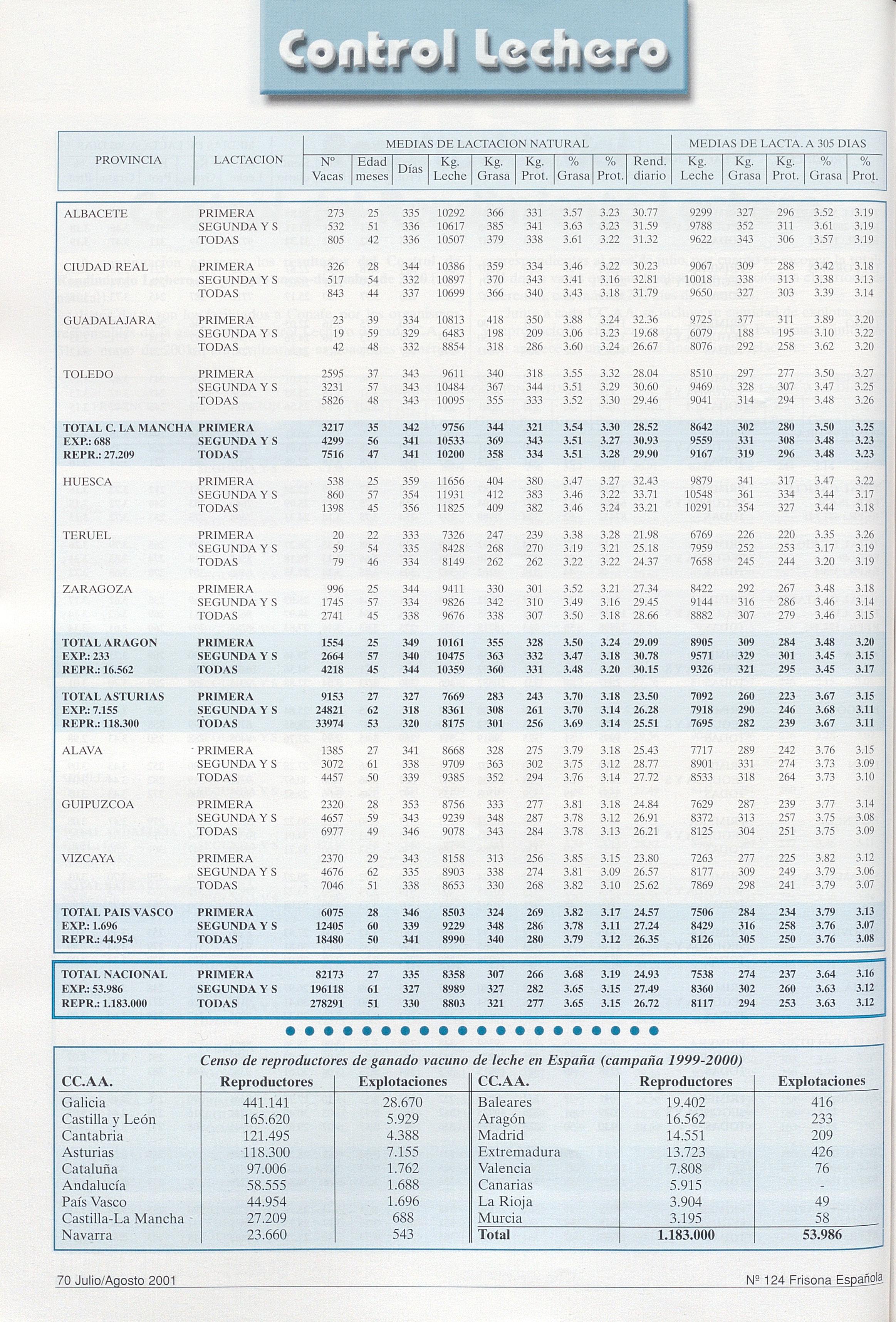 • Estadística de la Federación Mundial Holstein Friesian 1999
