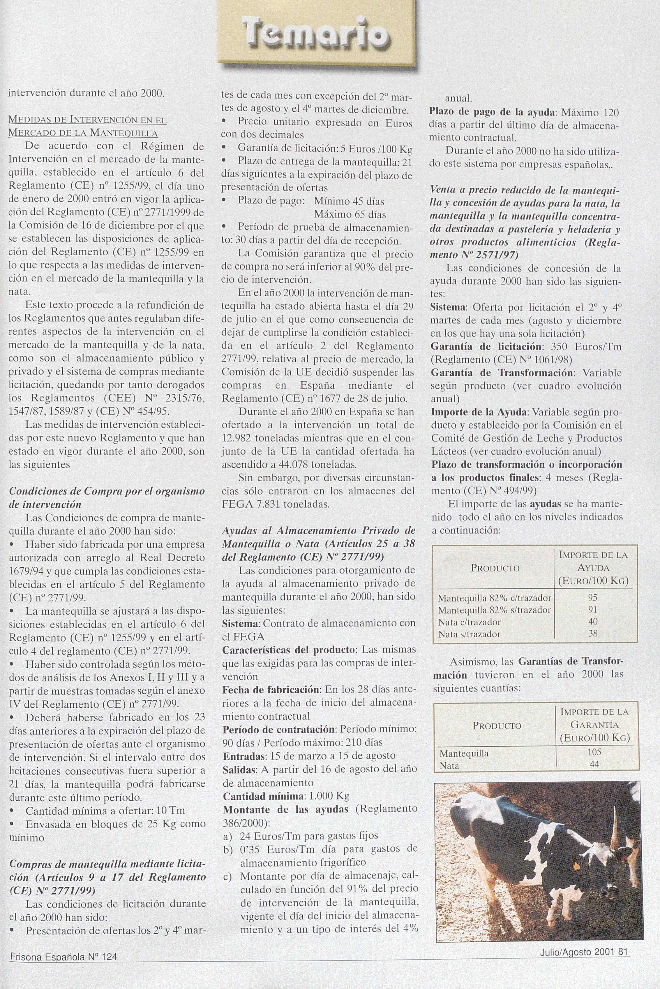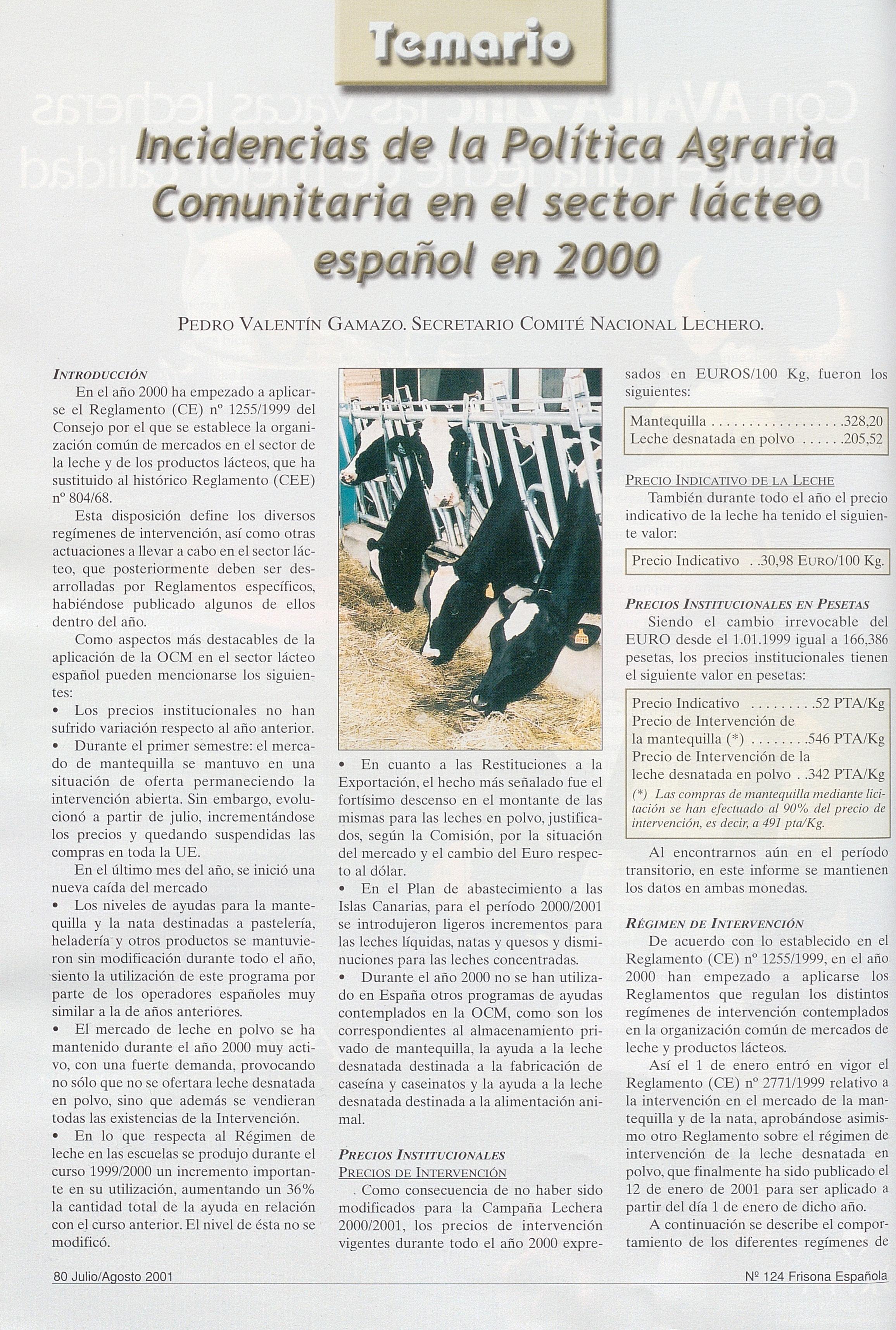 ■ Incidencias de la Política Agraria Comunitaria en el sector lácteo español en 2000