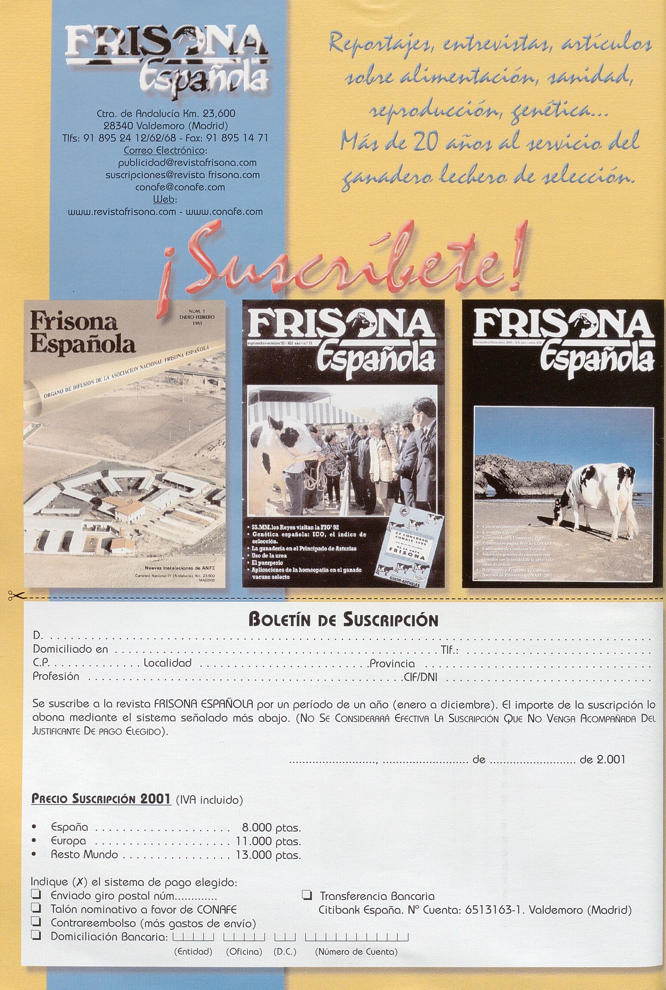 E malí: publicidad @ revistafrisona com suscripciones @ revistafrisona com conafe @ conafe com web: www revistafrisona com www conafe com