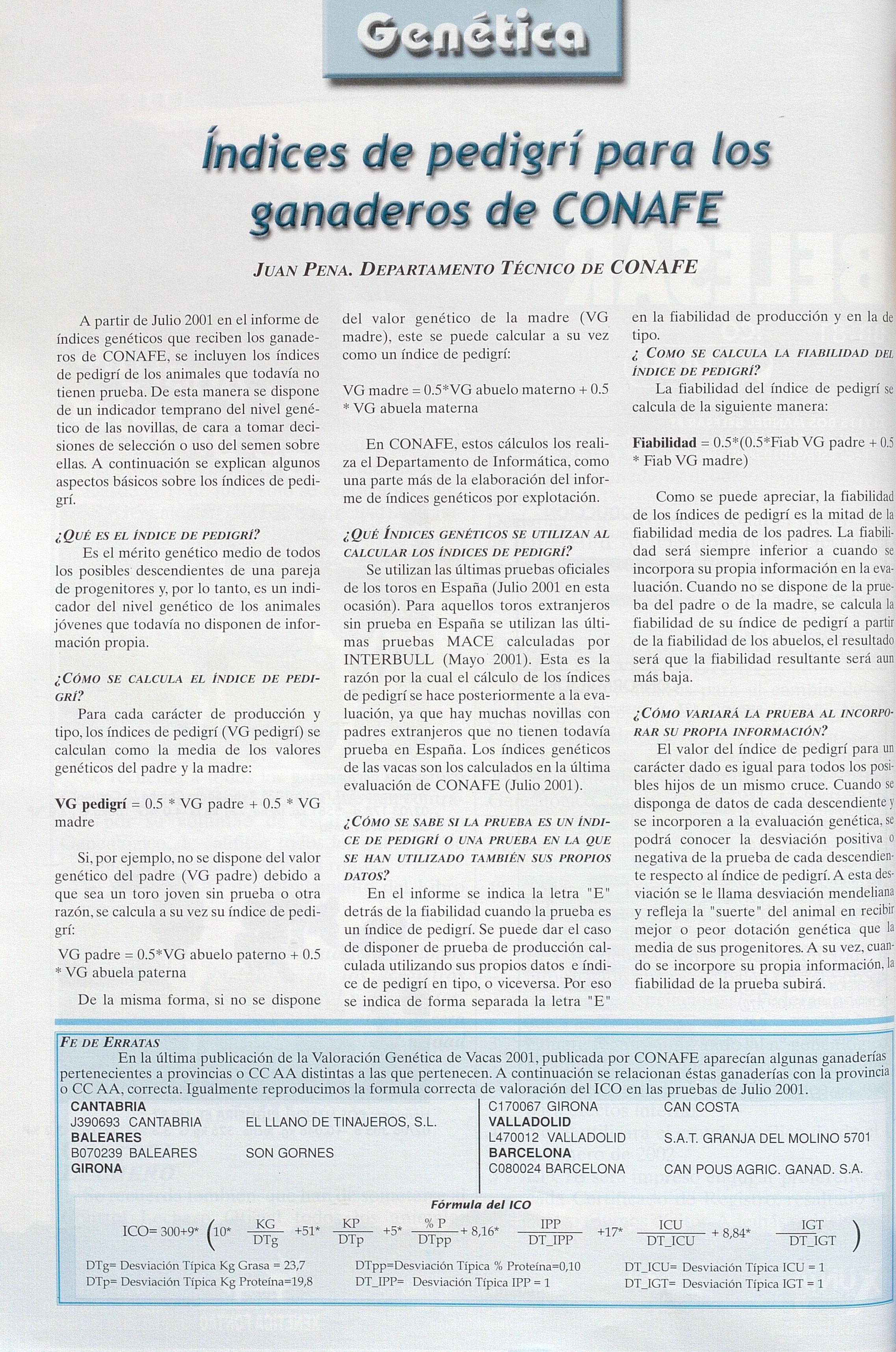 • Indices de pedigrí para los ganaderos de CONAFE J Pena 46