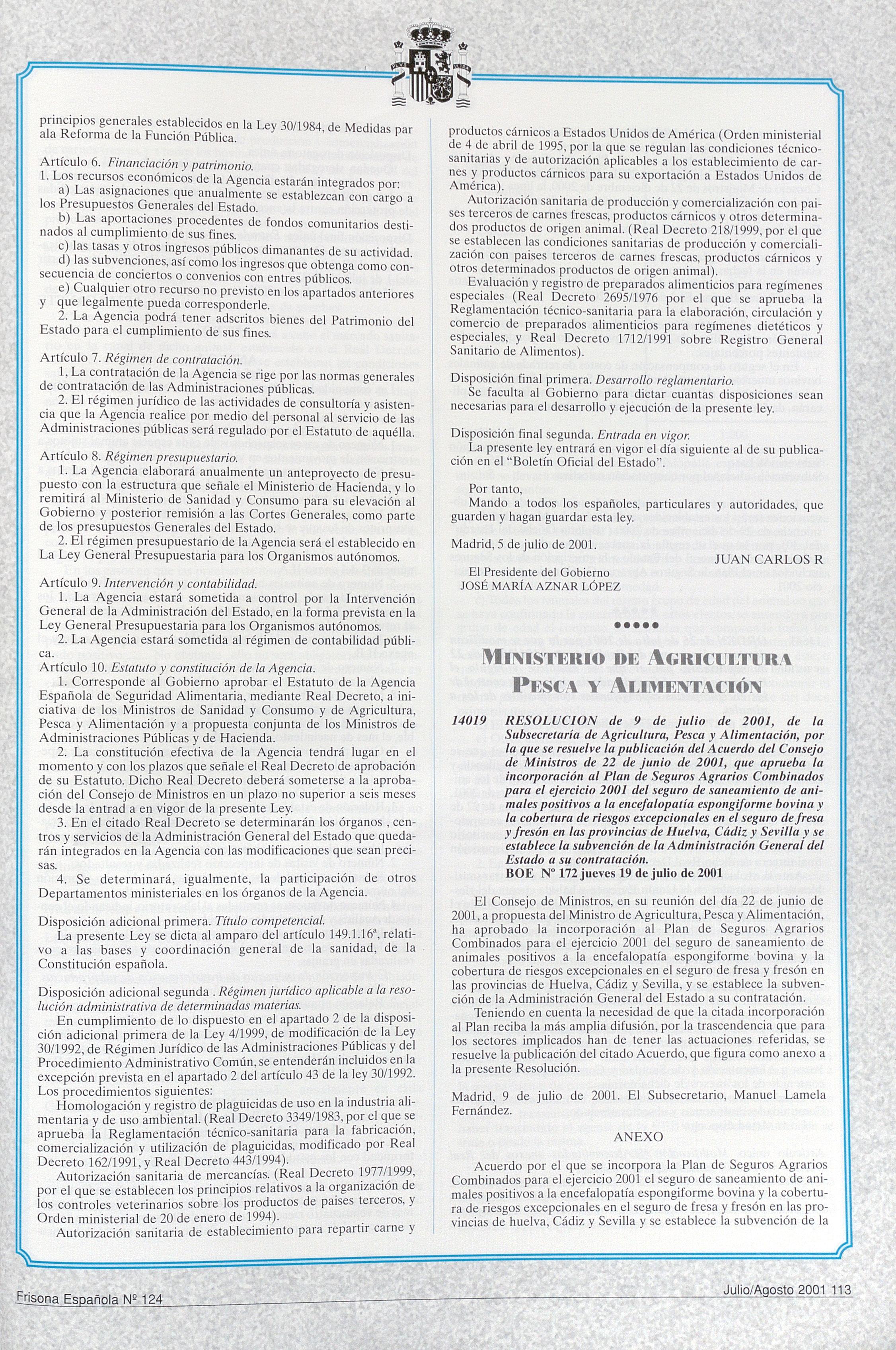 La presente Orden entrará en vigor el día 1 de agosto de 2001 Madrid, 26 de julio de 2001.