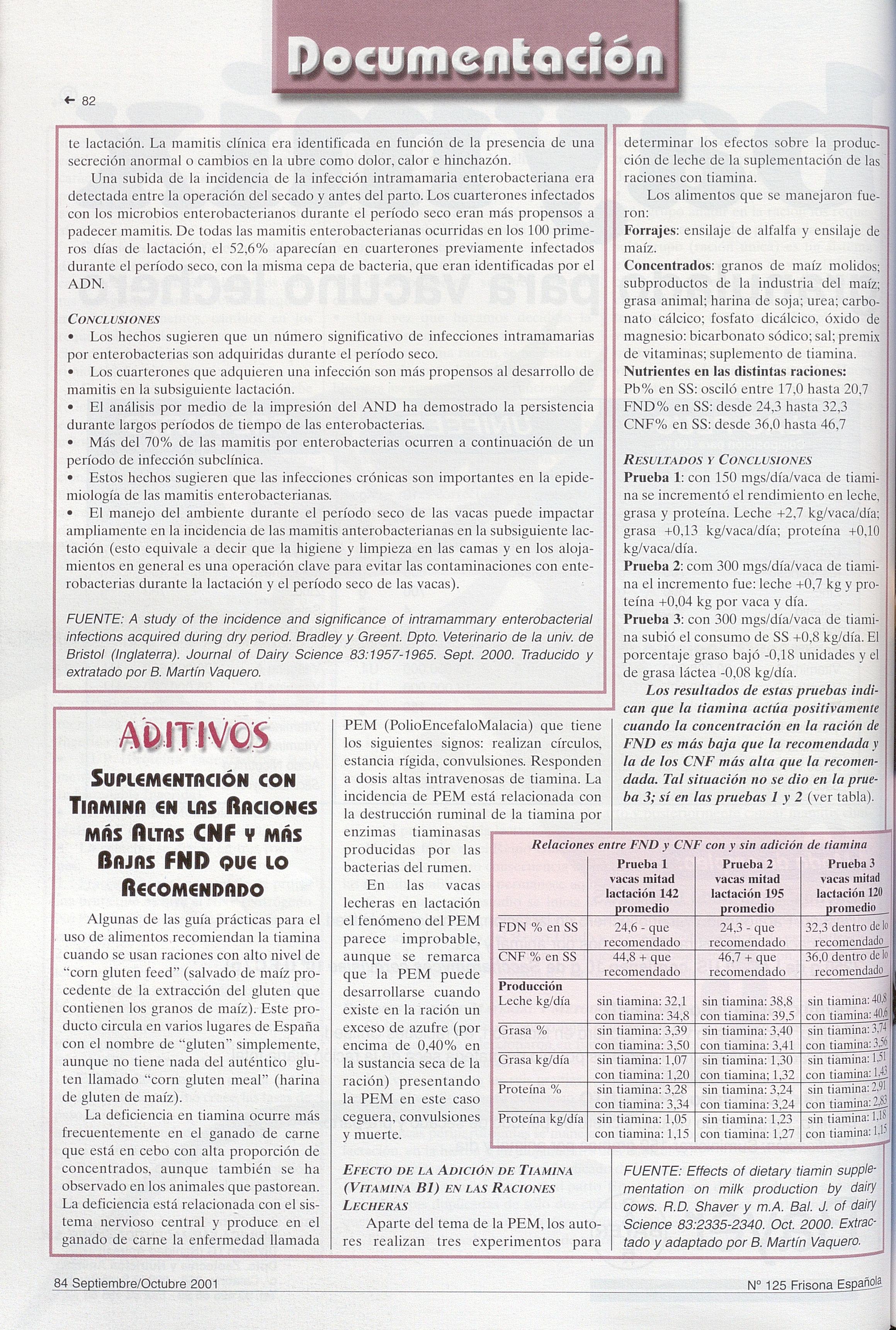 • Suplementación con tiamina en las raciones más altas CNF y más bajas FND que lo recomendado 82
