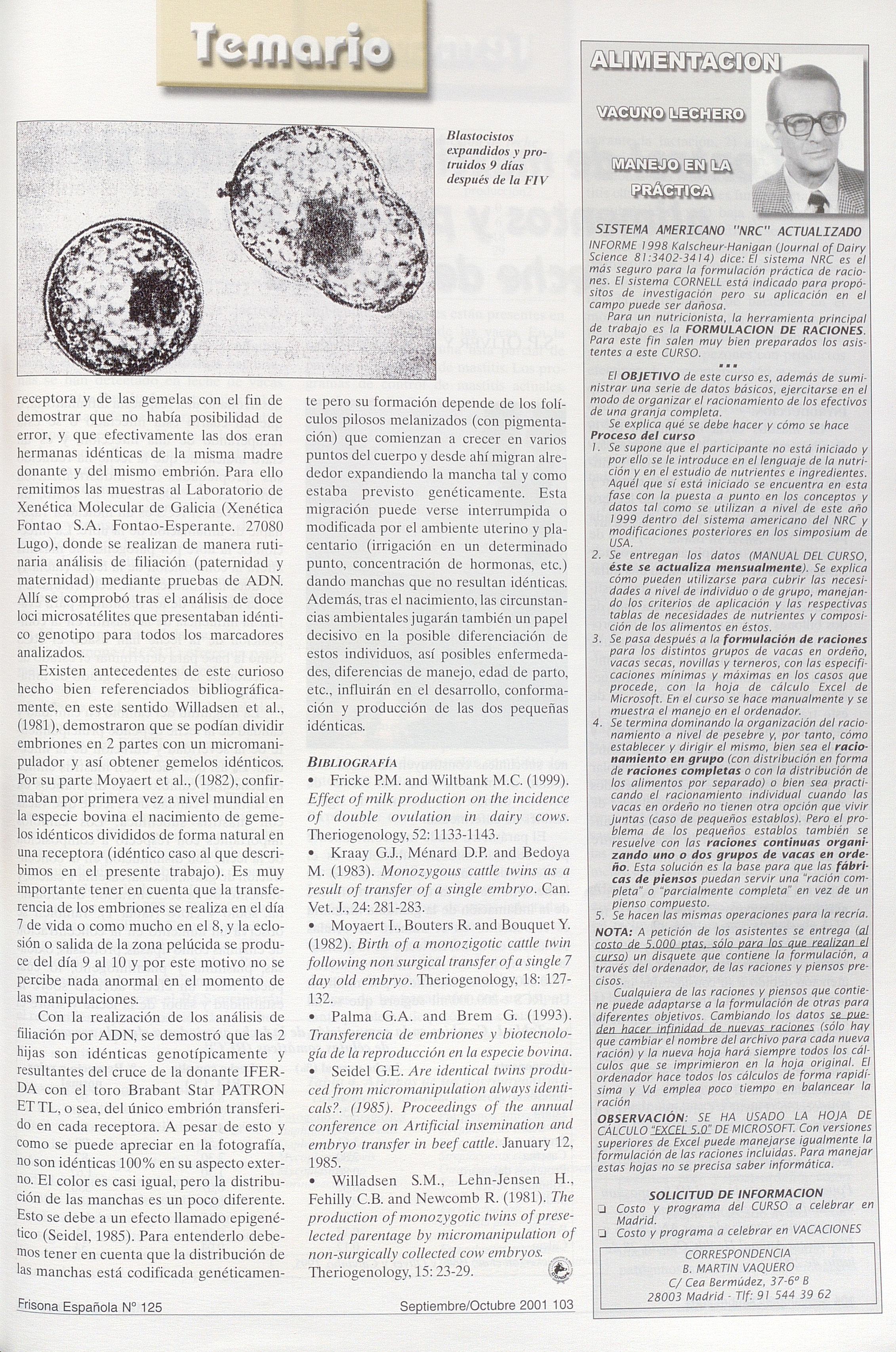 • Nacimiento de gemelas idénticas de una transferencia embrionaria D-P Menard, D Martínez y J L Viana 102
