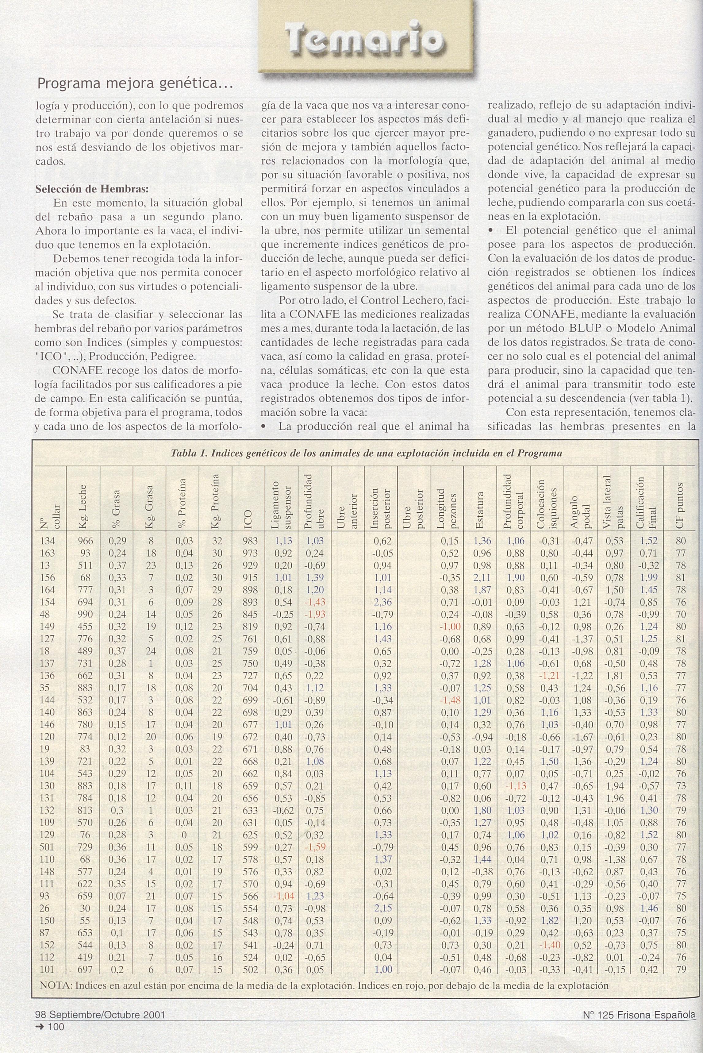 • Programa de mejora genética realizado en la coop. Vega Esla J. Miguélez..................... 96