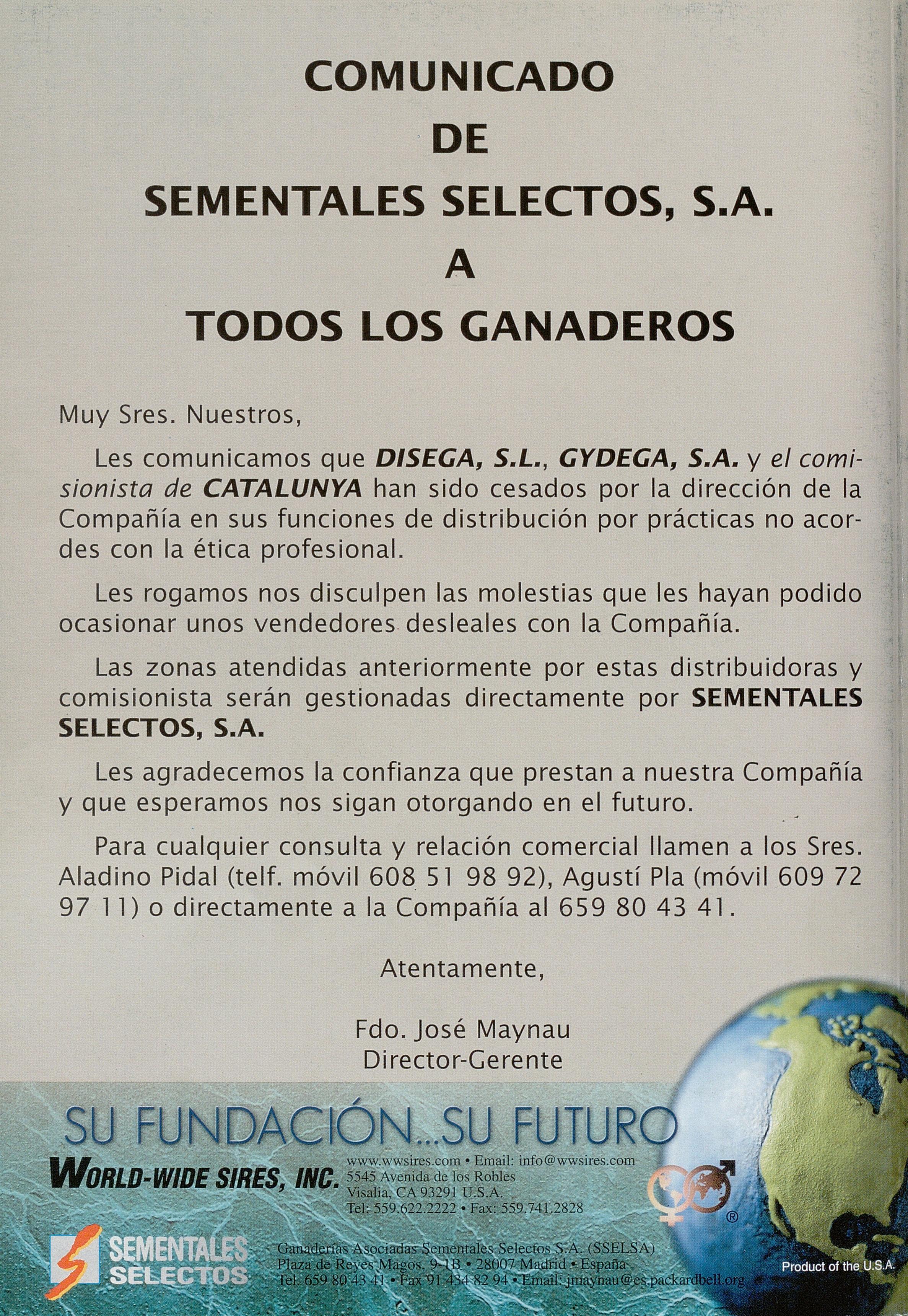 Para cualquier consulta y relación comercial llamen a los Sres Aladino Pidal (telf. móvil 608 51 98 92), Agustí Pía (móvil 609 72 97 1 1) o directamente a la Compañía al 659 80 43 41.