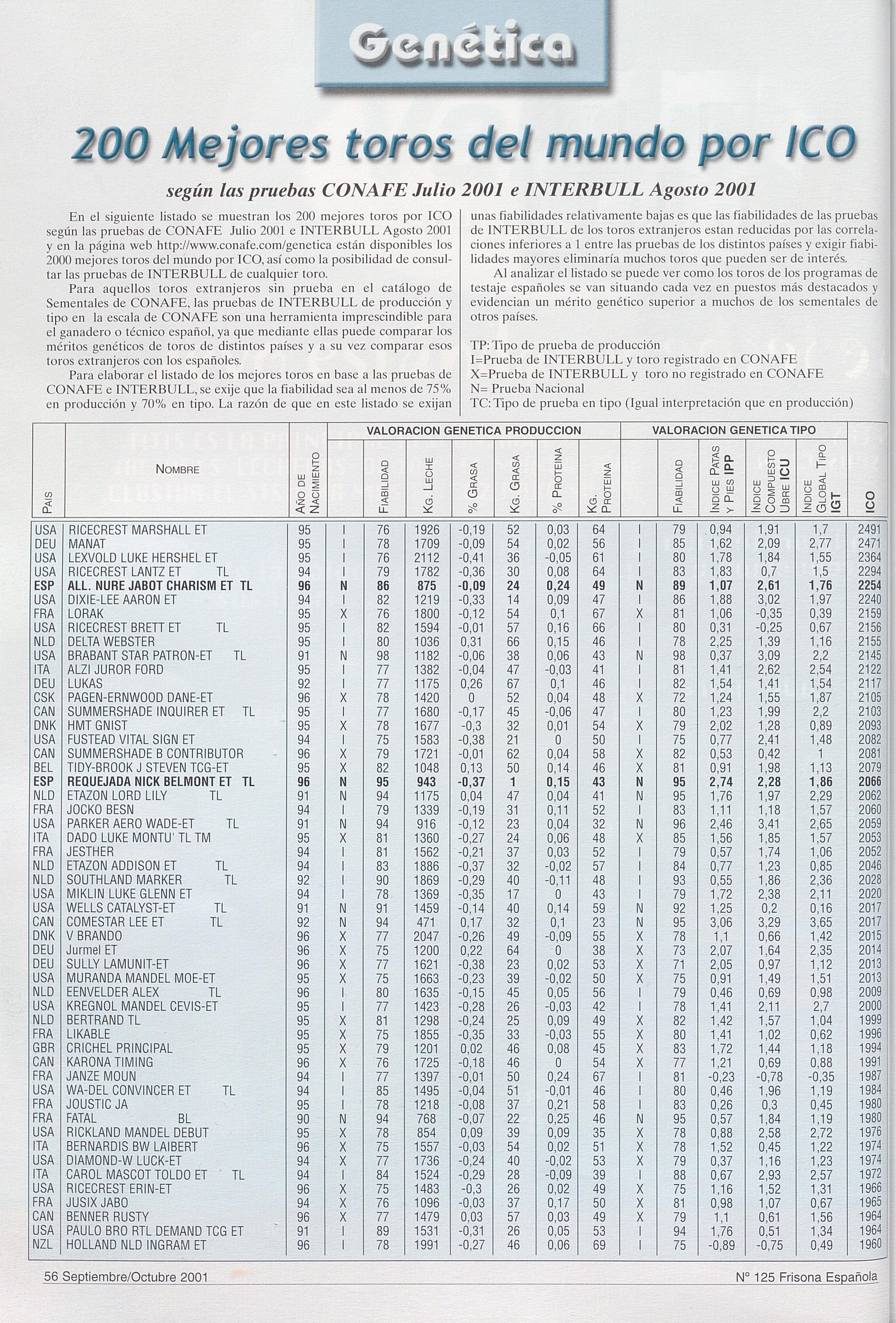 • Animales calificados MB y EX durante los meses de junio, Julio y agosto de 2001 64