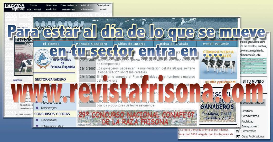 En www.revistafrisona.com se ofrecen puntualmente las noticias más relevantes y actualizadas relacionadas con el sector agropecuario. Los lectores interesados en sanidad, política, comercio... tienen aquí su sitio. Durante los últimos meses ha sido noticia en la web: