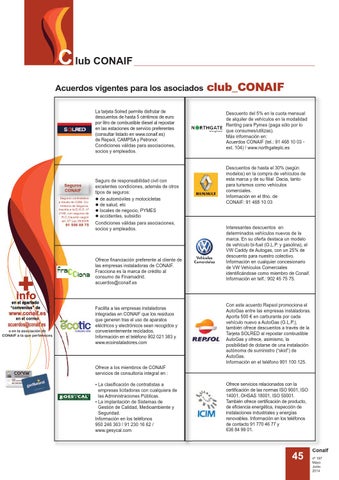 club_CONAIF Descuento del 5% en la cuota mensual de alquiler de vehículos en la modalidad Renting para Pymes (paga sólo por lo que consumes/utilizas). Más información en: Acuerdos CONAIF (tel.: 91 468 10 03 ext. 104) / www.northgateplc.es Descuentos de hasta el 30% (según modelos) en la compra de vehículos de esta marca y de su filial Dacia, tanto para turismos como vehículos comerciales. Información en el tfno. de CONAIF: 91 468 10 03