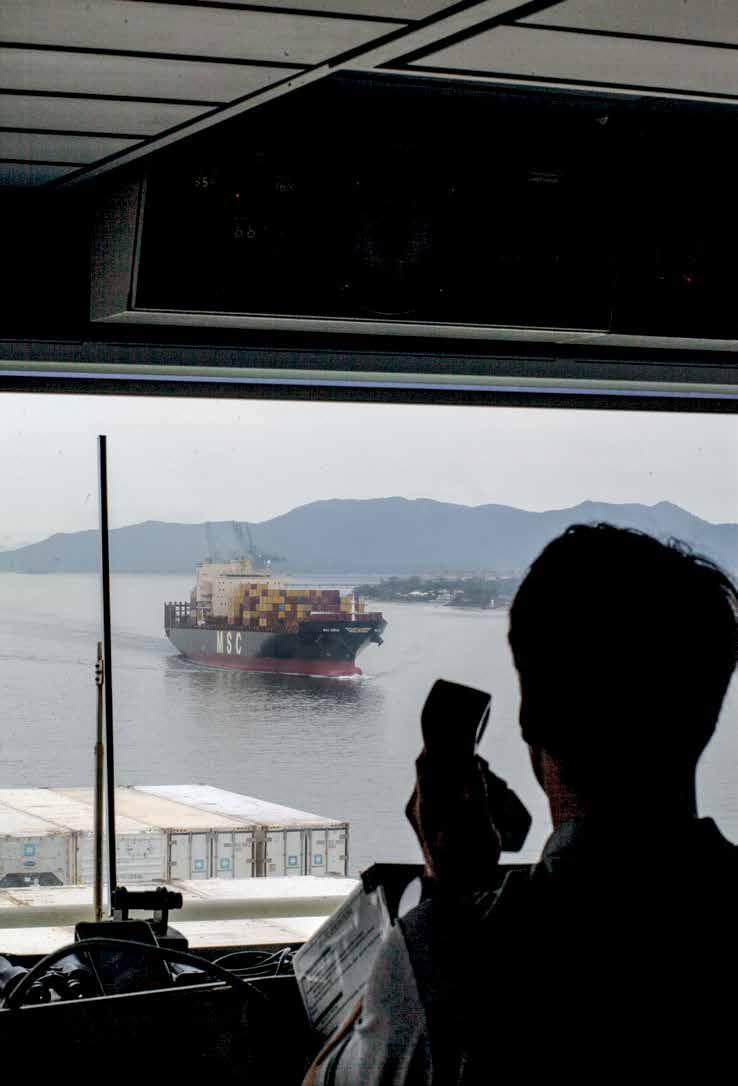 com a correnteza forte. A maior dificuldade é fazer isso de forma rápida, porque, quando a barra reabre, precisamos marcar manobra a toque de caixa, pois ela pode fechar rapidamente também. E não podemos esquecer de informar todos os envolvidos na operação: navio, amarração, porto, rebocadores, marinheiros e práticos –ressalta o operador Fabiano Junior.