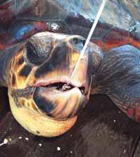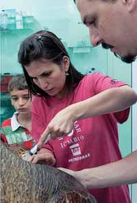 tante para que saibam como proceder em caso de afogamento e não desistam do animal atirando-o ao mar por medo de sanção criminal. O projeto também desenvolve petrechos de pesca que visam à proteção desses répteis.