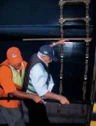 Na plateia um dos convidados que concordaram com a opinião do embaixador em relação à praticagem brasileira veio de longe, mais precisamente do outro lado do Oceano Atlântico. O prático Costa Neto (ver foto p.10), de Angola, do alto dos seus 30 anos de atividade, veio em nome dos 11 práticos existentes em seu país buscar acordo de cooperação com o Brasil para capacitação e aperfeiçoamento do serviço de praticagem angolano. “Tanto os práticos de Angola quanto os do Brasil têm muito a lucrar com essa interação devido às peculiaridades de cada país”, disse Costa Neto.
