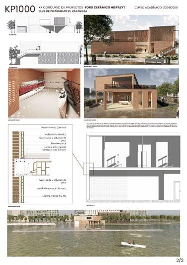 El Foro Cerámico, que está promovido por la Sección de Ladrillos Cara Vista de Hispalyt, tiene como actividad principal el Concurso de Proyectos, que este curso 2024/2025 ha consistido en el diseño de un Club de Piragüismo en Zaragoza con fachadas de ladrillo cara vista
