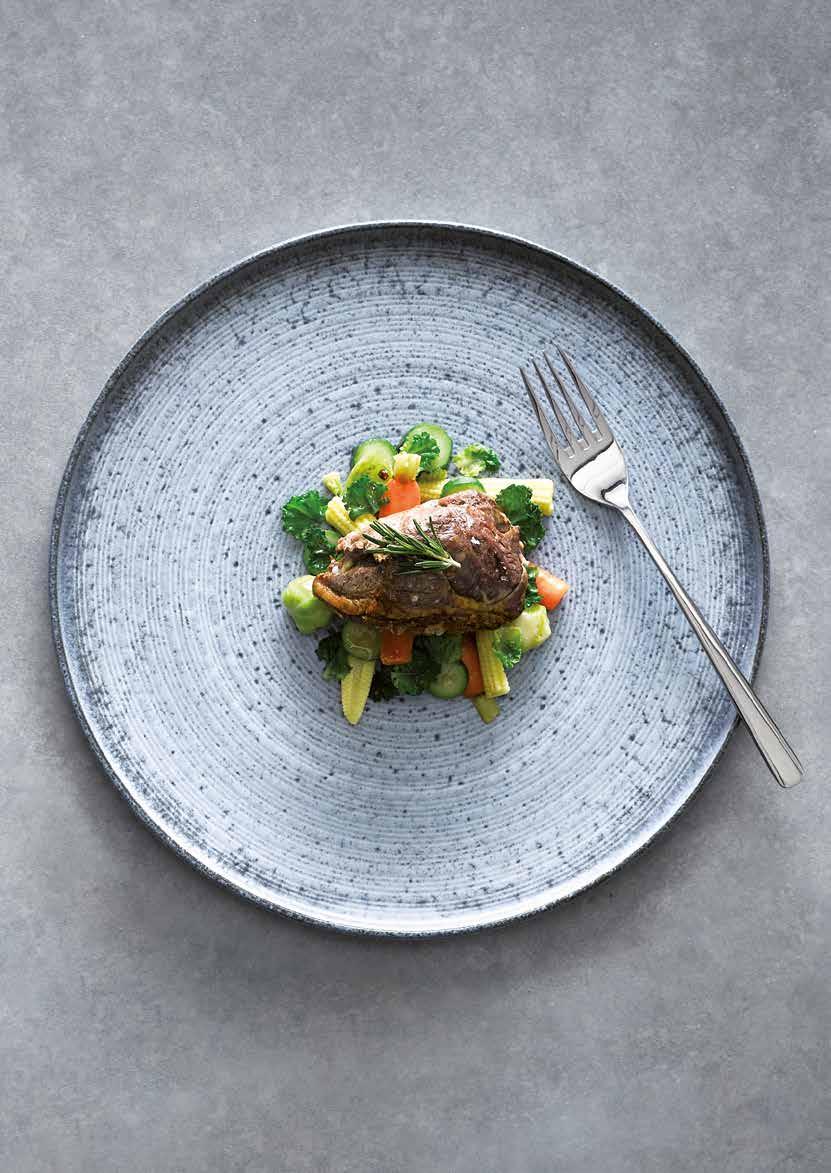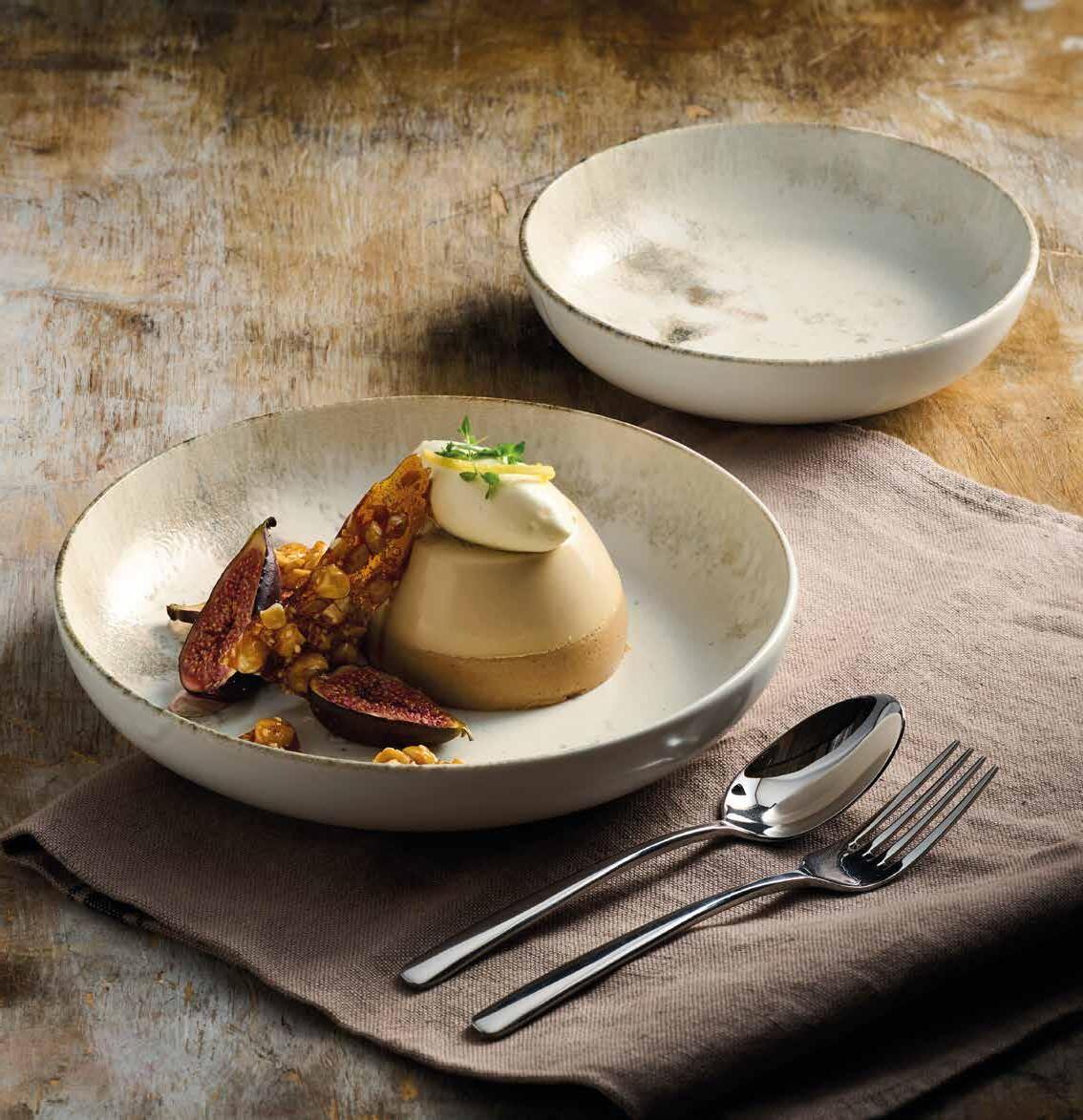 Natural shades with a satin textured finish to enhance casual dishes, a perfect choice for current and enticing menus.