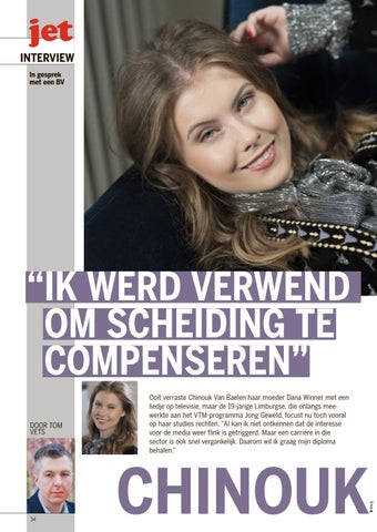 Ooit verraste Chinouk Van Baelen haar moeder Dana Winner met een liedje op televisie, maar de 19jarige Limburgse, die onlangs mee werkte aan het VTMprogramma Jong Geweld, focust nu toch vooral op haar studies rechten. “Al kan ik niet ontkennen dat de interesse voor de media weer flink is getriggerd. Maar een carrière in die sector is ook snel vergankelijk. Daarom wil ik graag mijn diploma behalen.”