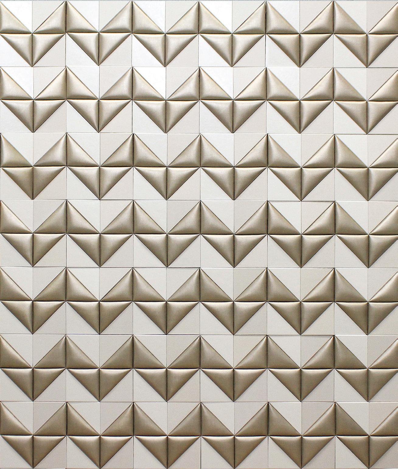 The Chevron print dates back to 1800 BC signifying eminence and strength. This padded chevron pattern projects assertively from the wall, combining poise with classic design.