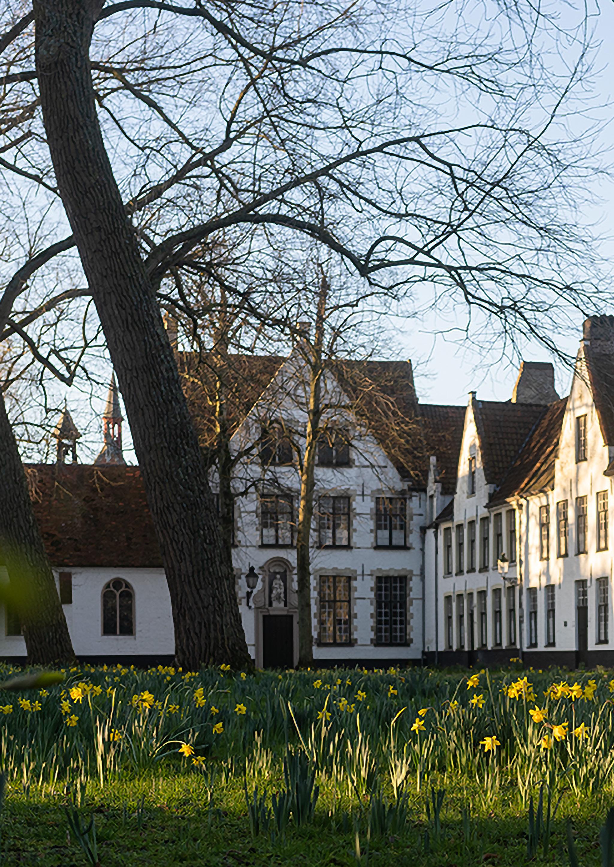 Wat is bescherming? Waar vinden we veiligheid en geborgenheid in een wereld die soms zo bedreigend lijkt, een wereld die voortdurend verandert? Wie door de poort van het Brugse Begijnhof stapt, stapt een andere werkelijkheid binnen. De ruis van de stad valt stil: stemmen en voetstappen lossen op in een verstild universum van groen, licht en oude kasseien. Hier hangt de belofte van stilte en verbondenheid in de lucht, gedragen door het schaduwspel van bomen en het gezang van vogels. Dit is de wereld van Sauvegarde –het woord dat in gouden letters boven de toegangspoort schittert. Sauvegarde is het Franse woord voor bescherming. Het is meer dan een thema: het vormt het kloppende hart van dit project. Sauvegarde nodigt uit tot vertraging, tot stilstaan bij wat bescherming, zorg en intimiteit kunnen betekenen – toen en nu.