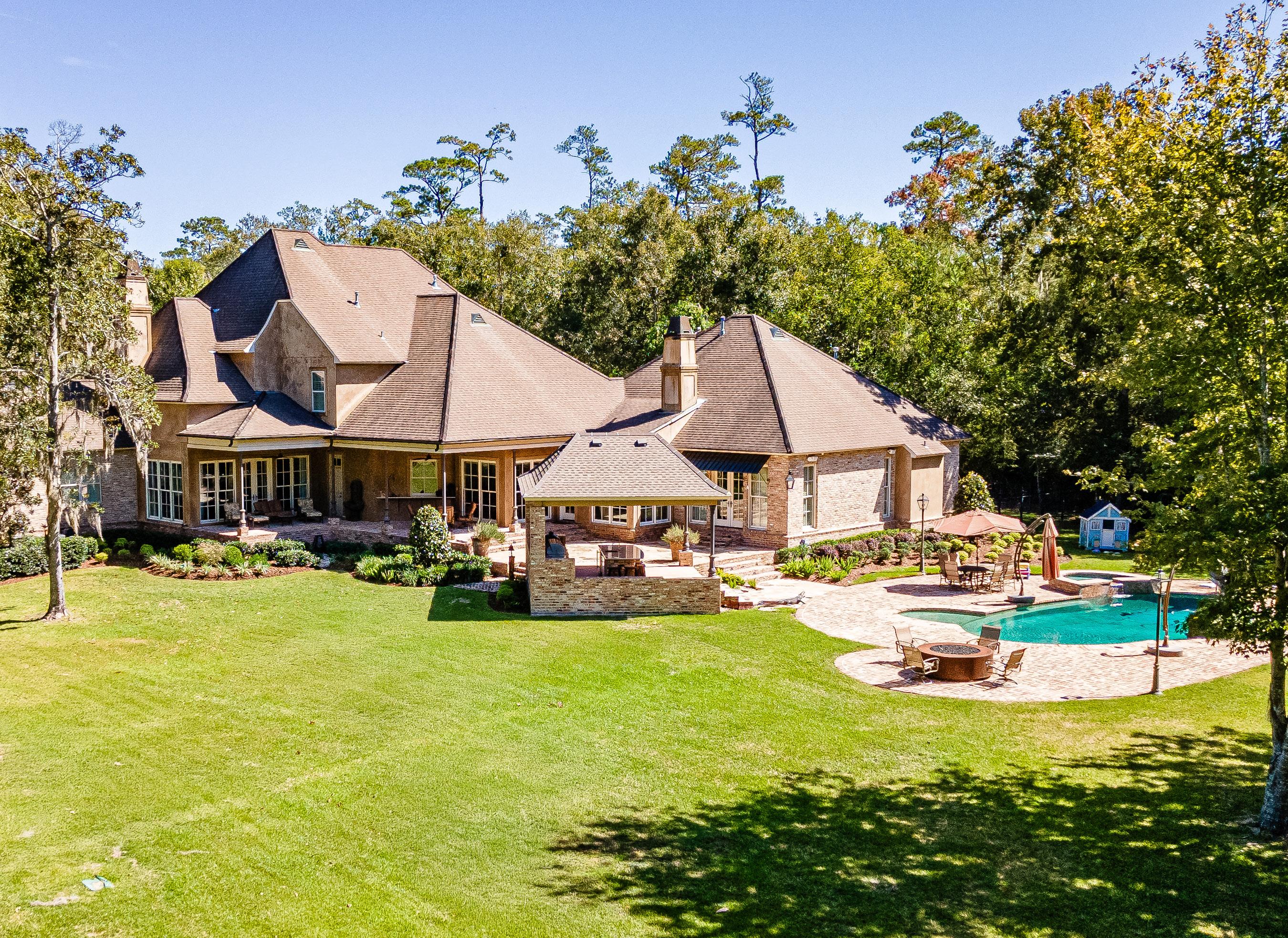 This Bayou Liberty estate is an enchanting French country retreat spanning over 11 acres of waterfront property. This sophisticated residence offers a heated saltwater pool, chef’s kitchen, extensive wine cellar, and triple boat launch. With meticulously landscaped grounds, nature boardwalks, and outdoor entertainment areas, it represents the perfect balance of luxury and bayou tranquility.
