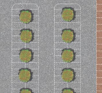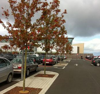 Native hedgerow & shade tolerant ground cover, climbers to ramp wall Street trees within car park grid Enhanced landscape