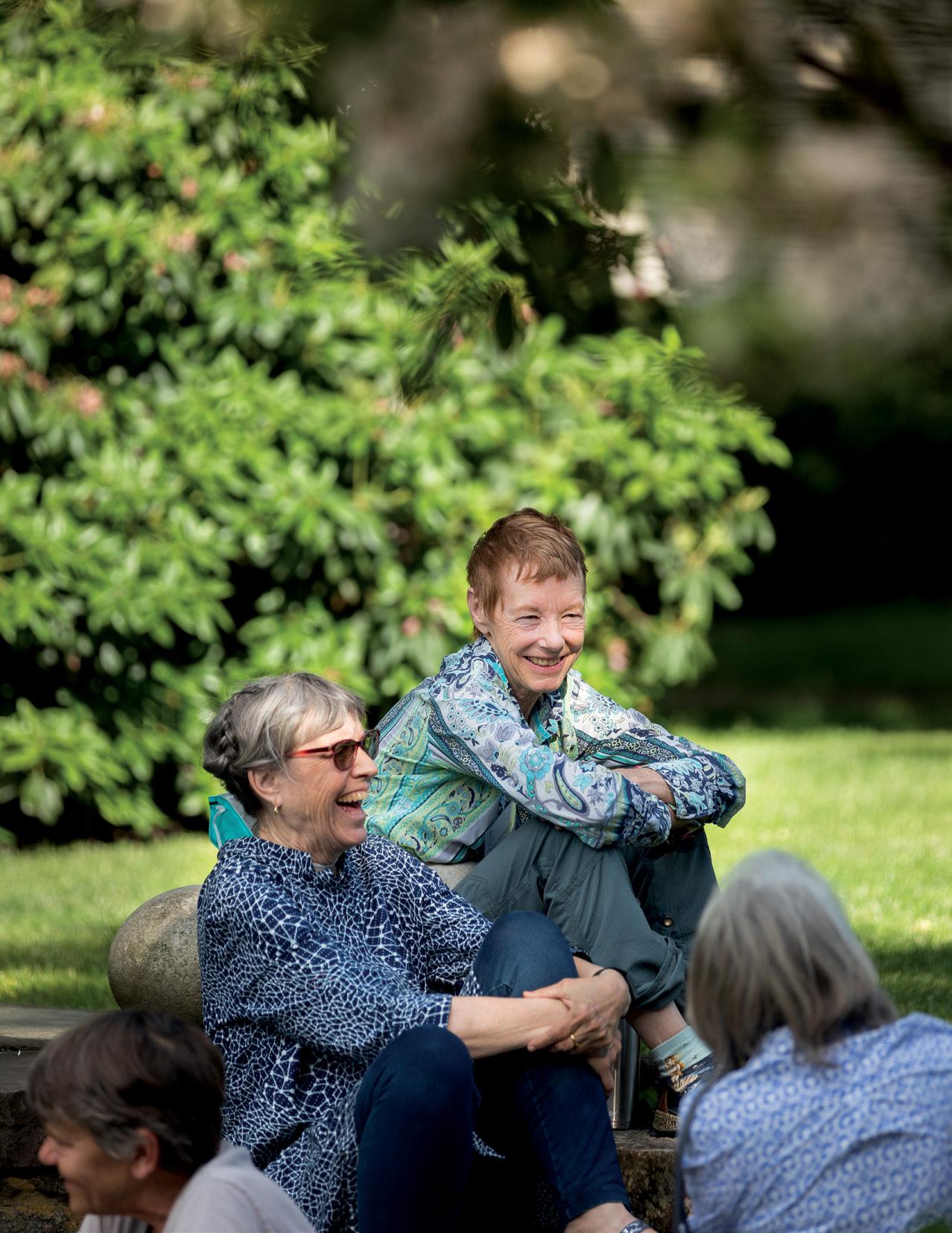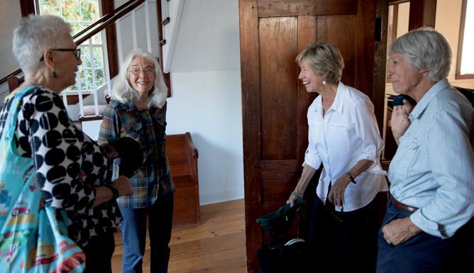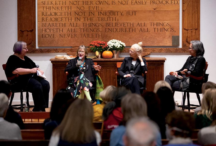 Pictured above left to right: Publisher Susan Knopf and authors Julia Glass, Susan Minot, and Ruth Ozeki, all 1974 classmates, reflect on the writing life in CA’s Chapel in October.