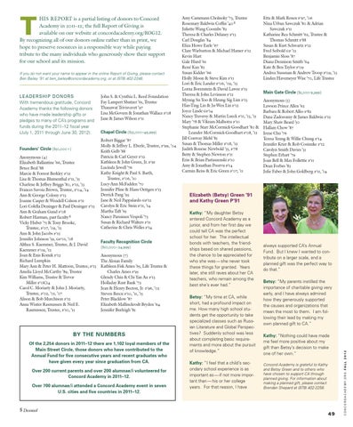 LEADERSHIP DONOR S With tremendous gratitude, Concord Academy thanks the following donors who have made leadership gifts or pledges to many of CA’s programs and funds during the 2011–12 fiscal year (July 1, 2011 through June 30, 2012).